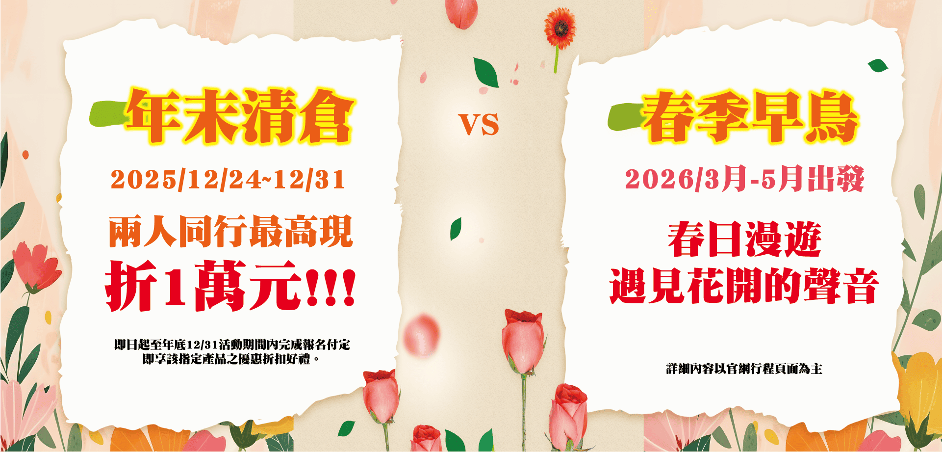 只到 12/31 11:59:59,指定行程最高第二人折1萬!