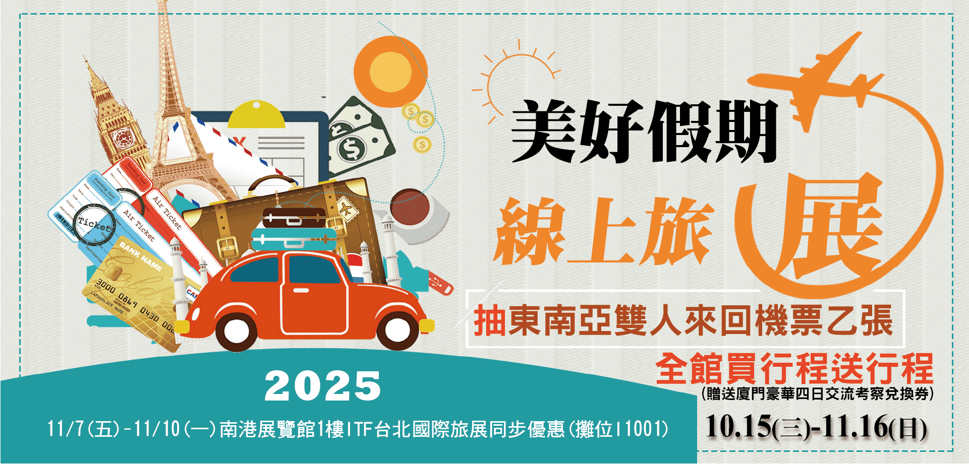 美好假期2025線上旅展開跑囉~即日起至11/16活動期間內達成以下好康活動項目條件,即享各項好康優惠。