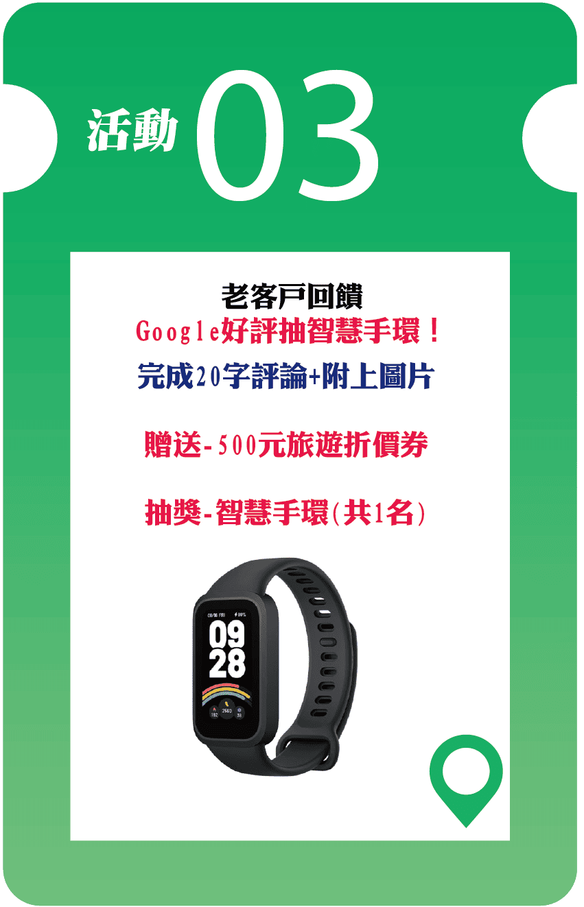 【好康活動三 - 老客戶回饋Google好評贈送500元折價券再抽小米手環】