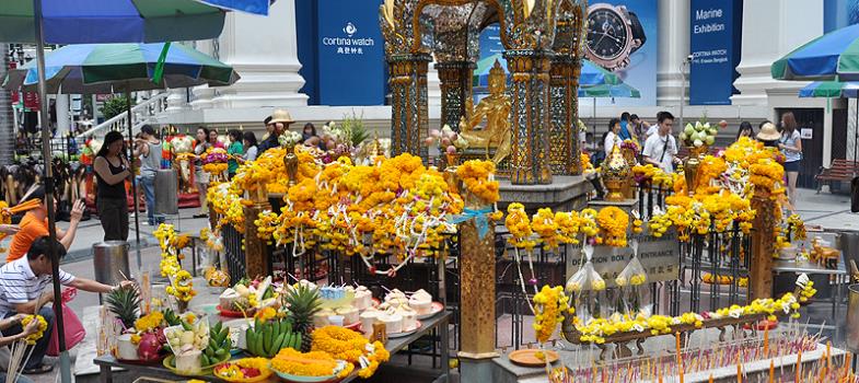 富盛名的愛樂威四面佛,無論是求財或婚姻都很靈驗,也是港台明星們的最愛。參拜方式:四面佛依序是事業、愛情、財運、平安,從正面順時鐘膜拜,每面三炷香。清楚的告知自己的姓名、地址及生日並詳細的說出你的心願及還願方式。