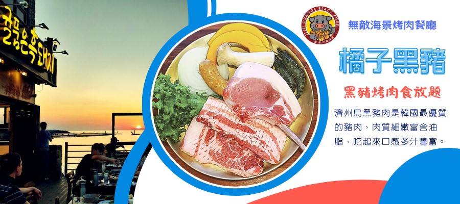 晚餐:★濟州島必嚐★【橘子黑豬烤肉귤품은흑돼지】黑豬烤肉 無限吃到飽(四人一桌 / 餐標24000韓元)