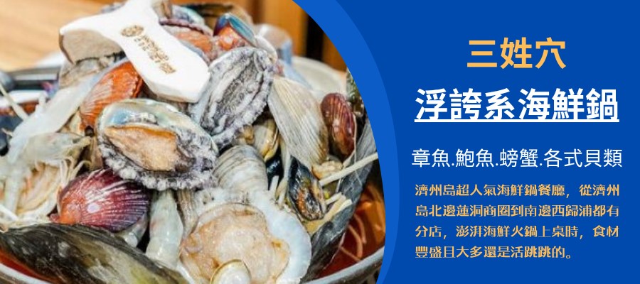晚餐:★濟州超人氣美食★ 【三姓穴/삼성혈해물탕】澎拜海鮮貝類鮑魚鍋 (四人一桌共鍋 / 餐標25000韓元)