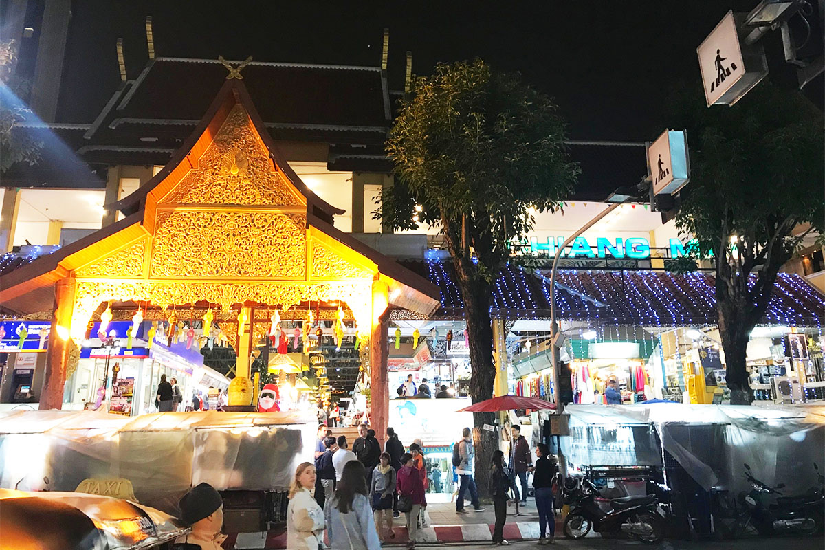 【清邁夜市】位於清邁最熱鬧的昌康路( Chang Klan Road )是泰國旅遊清邁行程必去的景點,在這裡能買到價格優惠的手工藝品,富有少數民族與泰式傳統風情的服裝飾品,如十字繡的衣物、手工編織的包包、染上五顏六色的泰絲,都是清邁夜市必買的物品。而近年這裡更被規劃為週六日的夜市街區,吸引大批旅客前往朝聖,沒到過清邁夜市,就等於沒來過清邁!當天色漸暗,各式蓬架、路邊攤販漸漸雲集,與隨之而來的人潮,交織出清邁五光十色的夜生活。