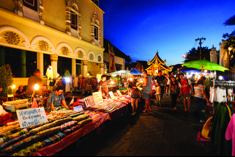清萊唯一的夜市,與清邁相比規模較小,但卻算得上五臟俱全,是入夜後城內適合閒逛打發時間的地方之一。有來自山地部落的各種工藝品,如木雕、大理石雕刻等,還有傳統的泰式按摩,以及當地特色的唱歌和舞蹈表演。