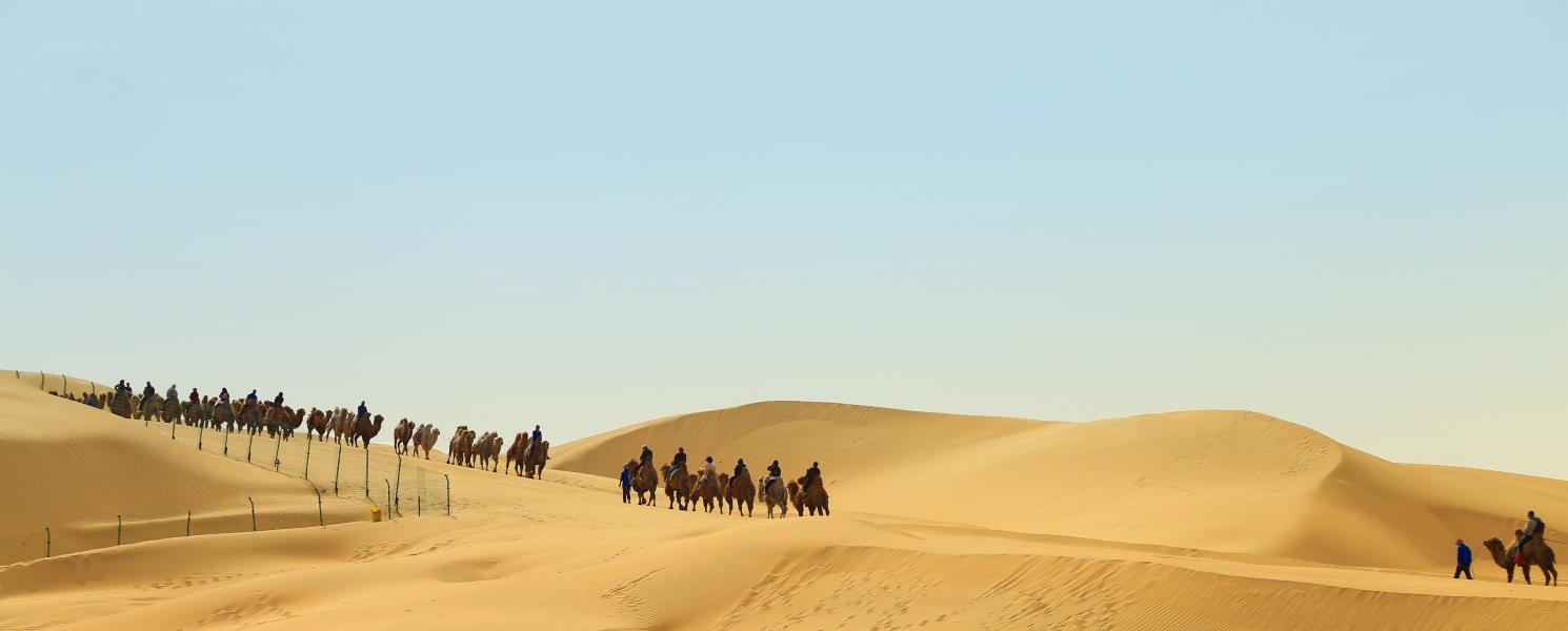 來到響沙灣,您將看到異常壯觀的駱駝群在沙漠中行走,牠們都是經過駝倌精心馴化的雙峰駝。看著牠們遠遠地朝您走來,是否有和牠們零距離接觸的衝動呢?快快來挑選一峰憨態可掬的駱駝,騎上牠,向沙漠進發吧!