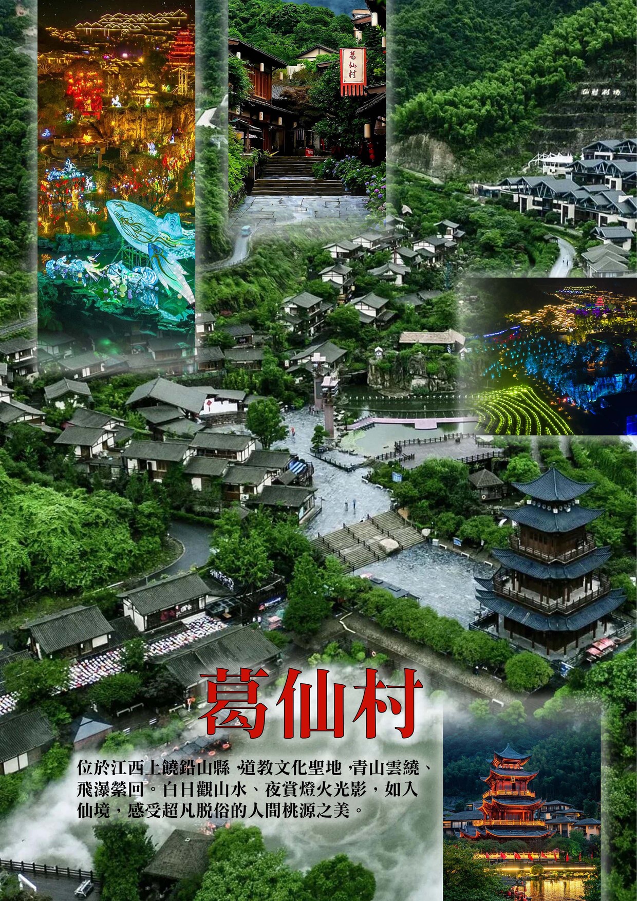 雲霧縹緲間隱藏著一處人間桃源,山水相依、仙氣氤氳,5A 級國家旅遊景區【葛仙村】位於江西上饒市鉛山縣,是以道教文化為主題打造的山水度假勝地。相傳為晉代道士葛玄修煉得道之地,村內“仙”為魂,結合山、水、雲霧與光影,展現出超凡脫俗的仙境意境。踏入雲霧繚繞的葛仙村,仿佛走進人間仙境。青山如畫、飛瀑如詩,道觀鐘聲在山谷間悠悠迴盪。白日可遊靈寶仙街、探幽茶園,微風拂面間感受道家清心的靜謐;夜幕降臨,萬盞燈火映照山水,水幕電影、光影秀與煙花交織成夢幻的奇景。這裡的每一步都彷彿踏在雲端,每一眼都是一幅畫。若要尋一處能忘卻塵世喧囂、洗滌心靈的所在,葛仙村便是答案——那是此生必遊、錯過會遺憾的仙境之地。