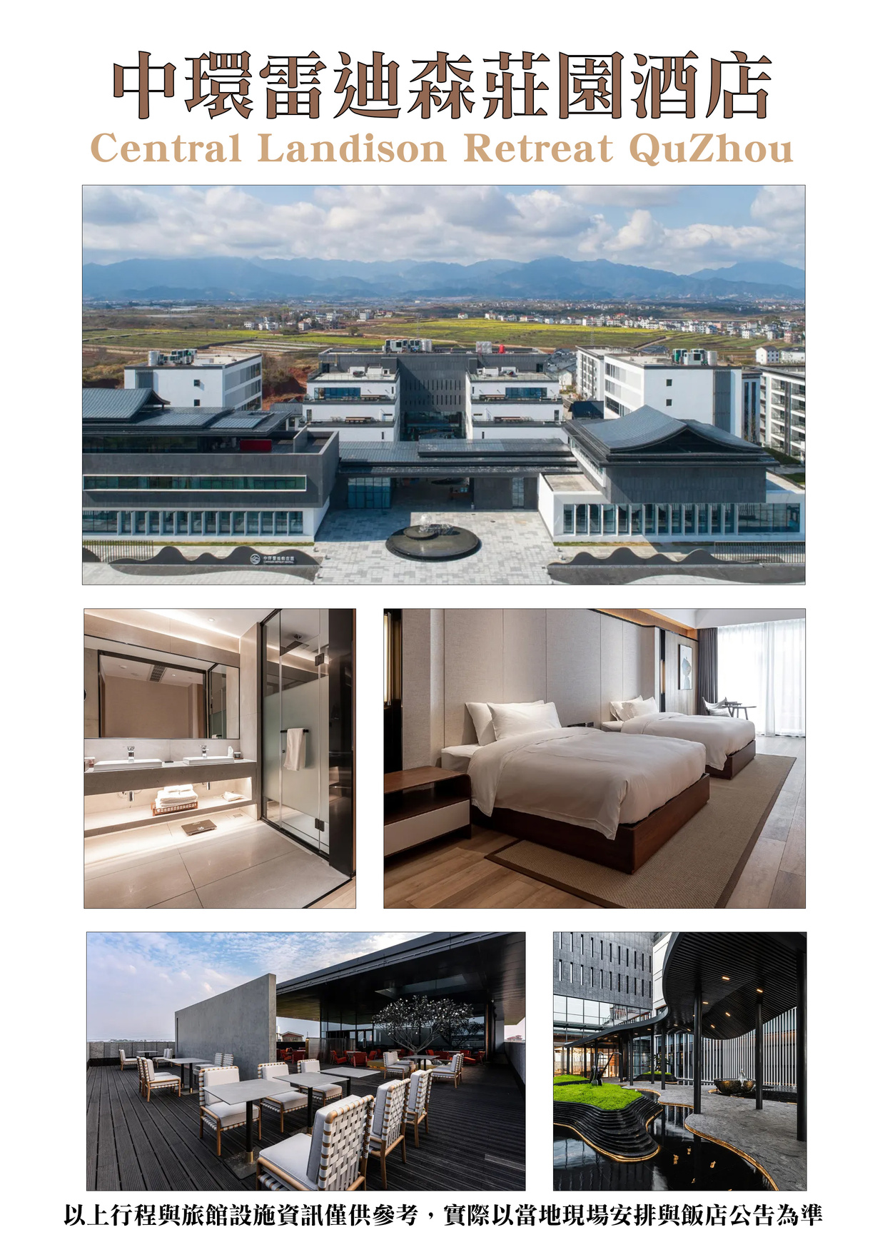 住宿:中環雷迪森莊園酒店或衢江東方大酒店或同級