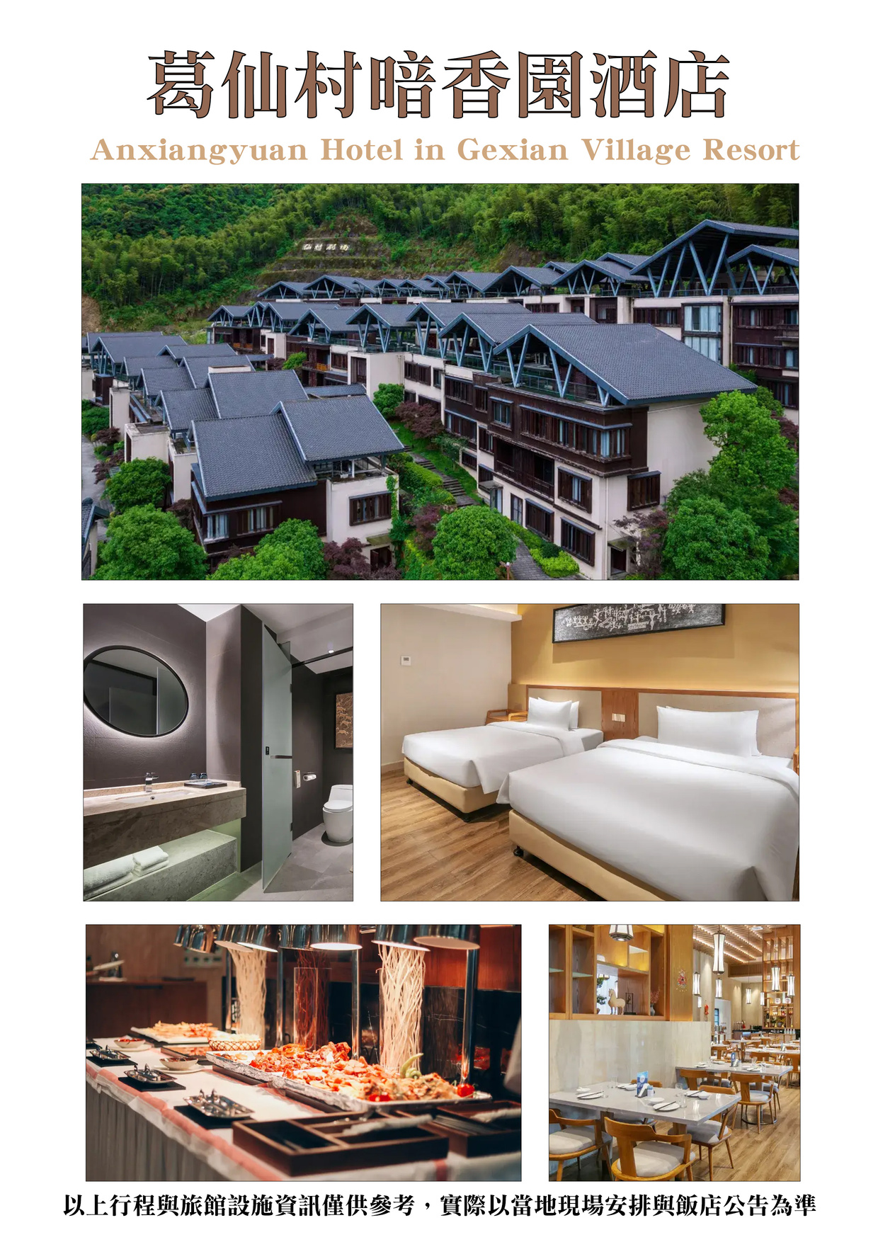 住宿:葛仙村暗香園酒店或葛仙村仙村客驛酒店或同級