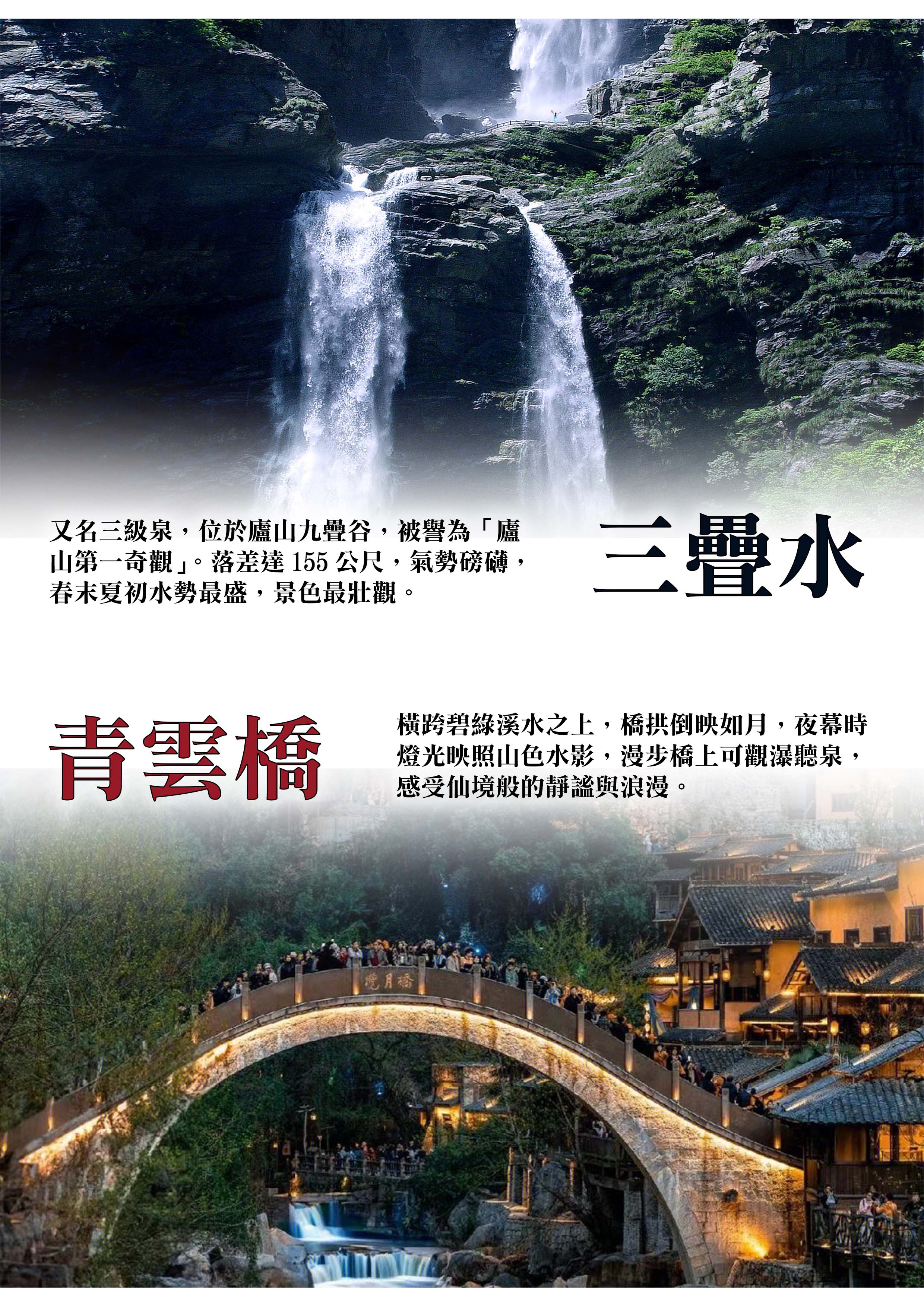帶著愉快的心情集合於『桃園機場』,辦理登機手續,隨後搭乘豪華客機飛往詩意江南的『杭州機場』。抵達後專車前往景區,沿途可欣賞江南獨有的山水風光——車窗外風景流轉,綠意與水色交織,讓人心情隨之舒展,彷彿旅程尚未正式展開,心靈便已先一步沉醉。這段沿途風光,為接下來的旅程揭開了溫柔而悠然的序章。