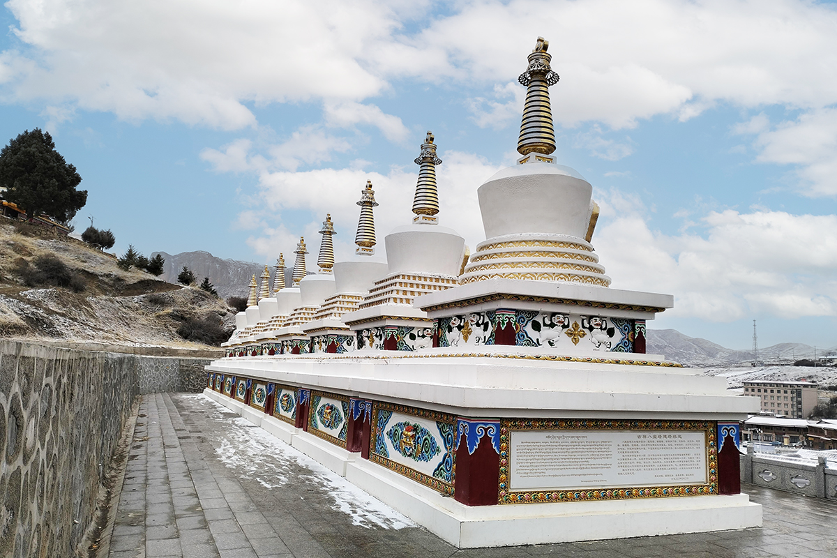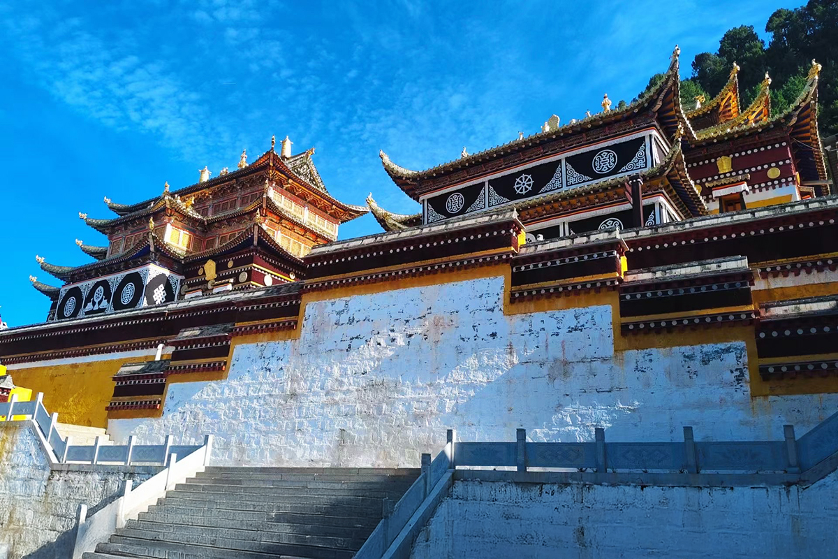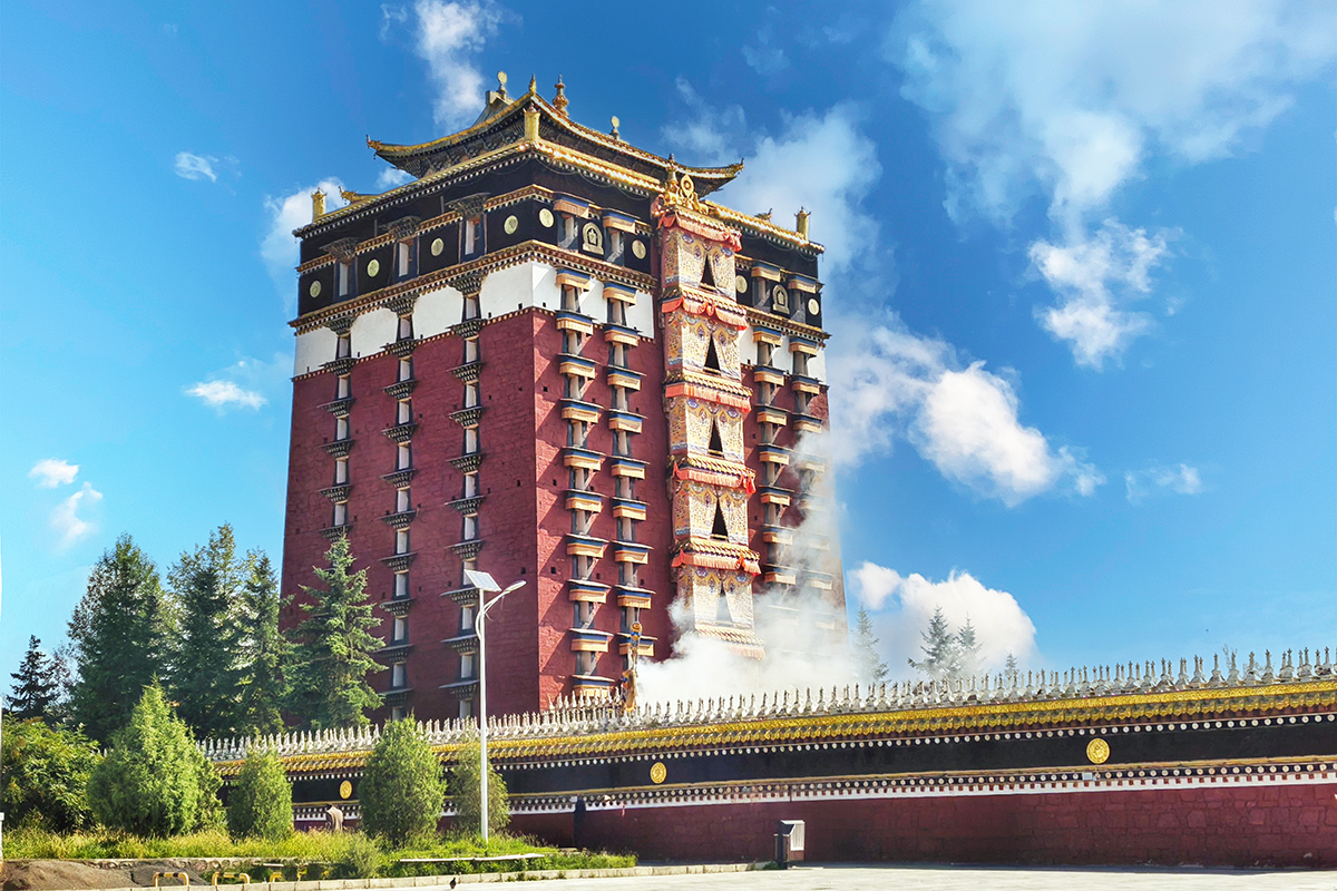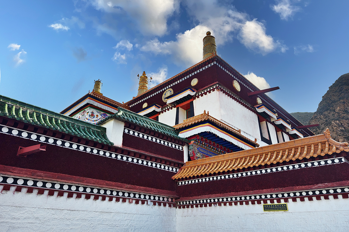一座融合藏族堡式與佛閣式建築精髓的九層聖殿,高40余米,紅牆金頂,氣勢恢宏。始建於1777年,歷經重建,如今仍是藏傳佛教噶舉派(白教)在安多地區的核心道場。閣內供奉1720尊佛像,以米拉日巴尊者及其弟子為主,涵蓋藏傳佛教各派開宗祖師,壁畫彩繪精美絕倫,被譽為“藏學博物館”。