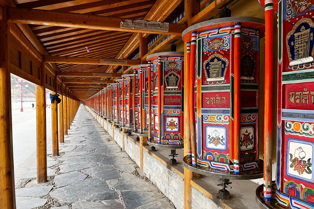 藏語意為“活佛大師的府邸”,是藏傳佛教格魯派六大寺院之一,被譽為“世界藏學府”。寺院始建於1709年,占地86.6萬平方米,建築群依山傍水,紅牆金頂在陽光下熠熠生輝,氣勢恢宏。這裡有全世界最長的轉經長廊,綿延3.5公里,2000多個經筒訴說著信仰的執著。