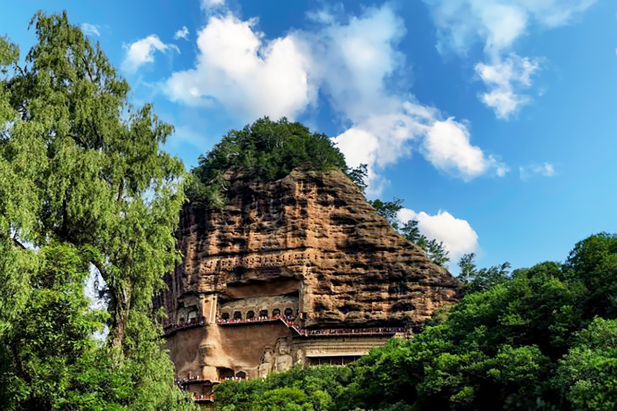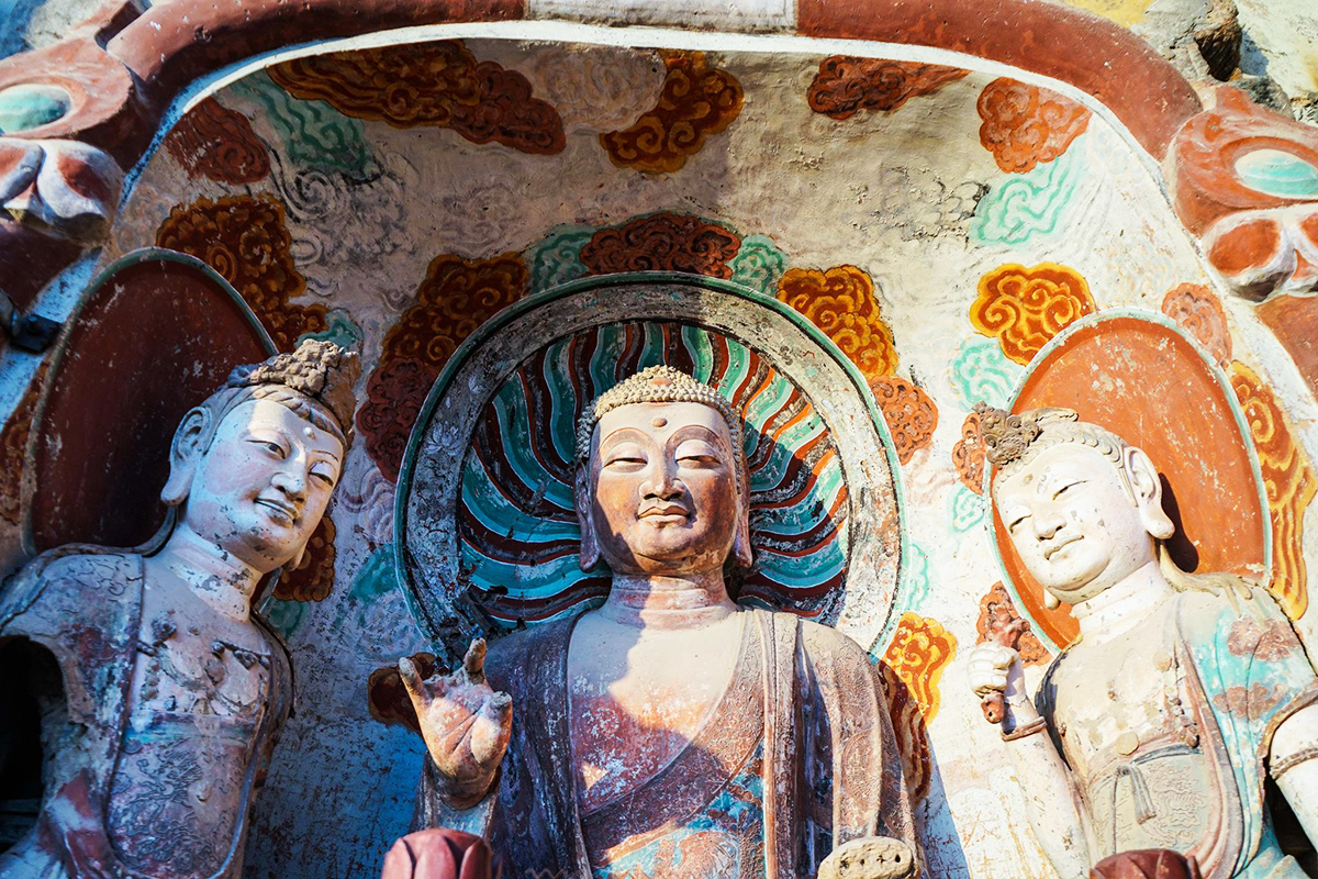 因山形似麥垛得名。作為中國四大石窟之一,它以“東方雕塑陳列館”著稱,擁有221個窟龕和3938尊泥塑造像,展現1600餘年的藝術演變。 石窟開鑿於懸崖峭壁,棧道淩空,洞窟密佈,融合自然與人文之美。 泥塑藝術精湛,造像神態各異,從莊嚴佛像到親切菩薩,皆栩栩如生,傳遞著跨越千年的“東方微笑”。