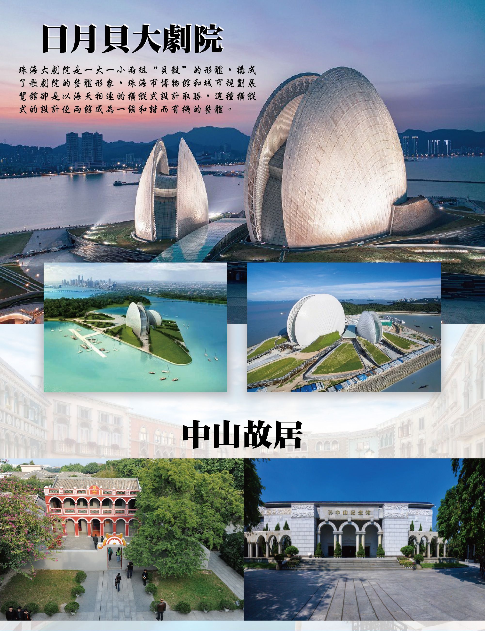 珠海城市文化名片【日月貝歌劇院(遠眺)】外觀設計靈感源自貝殼,造型優美如兩枚貝殼靜立海濱,成為珠海最具象徵性的建築之一。歌劇院融合藝術、建築與自然景觀,即便不入內參觀,外觀本身即具極高觀賞價值。白天呈現純淨典雅,夜晚燈光映照下更添迷人風情。作為文化地標,歌劇院象徵珠海文化藝術的提升,並展示城市邁向國際化藝術舞台的企圖心。旅客在此可欣賞建築美學,也能在海景與城市背景中留下精彩照片。