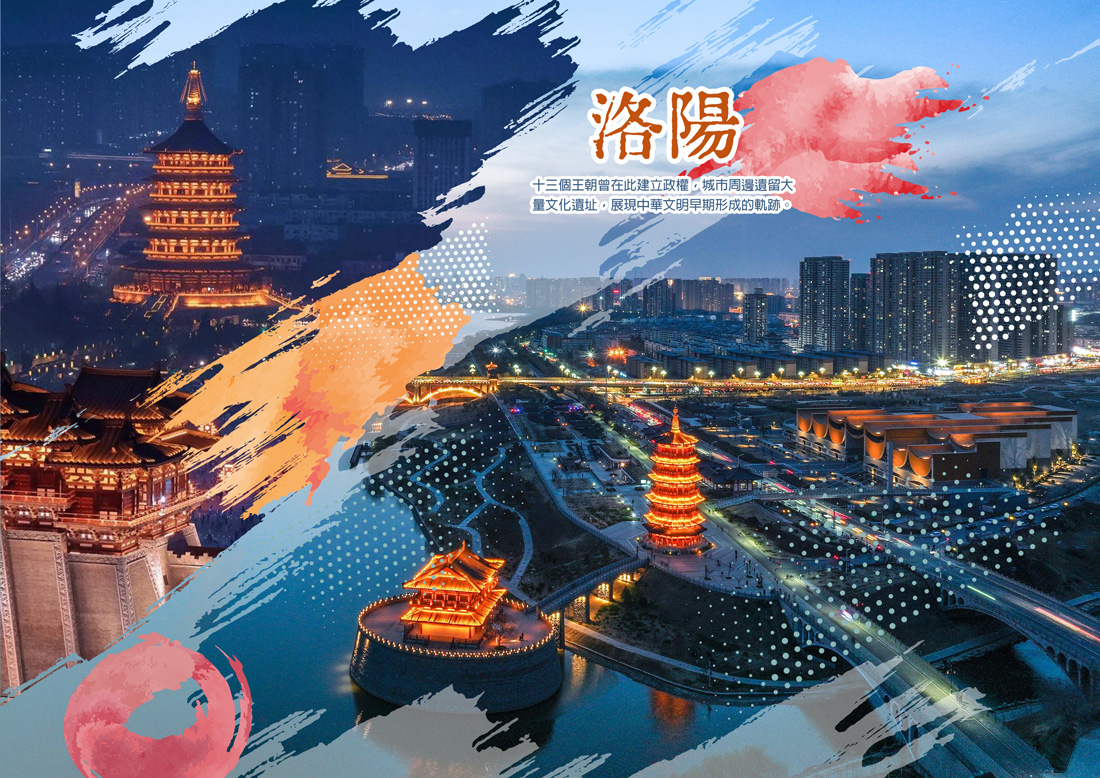 【洛陽】位於河南西部,是中國歷史上建都最早、建都朝代最多的城市之一,自古有「千年帝都」之稱。十三個王朝曾在此建立政權,城市周邊遺留大量文化遺址,展現中華文明早期形成的軌跡。洛陽地處洛河流域,群山環繞,水系發達,是古代農耕文化與禮樂制度的重要發源地。今日的洛陽以龍門石窟、天堂明堂、白馬寺等景點聞名,結合古都氣質與現代城市景觀。每年春季牡丹盛開,更吸引各地旅客前來賞花,使城市在文化與自然之間展現獨特魅力。