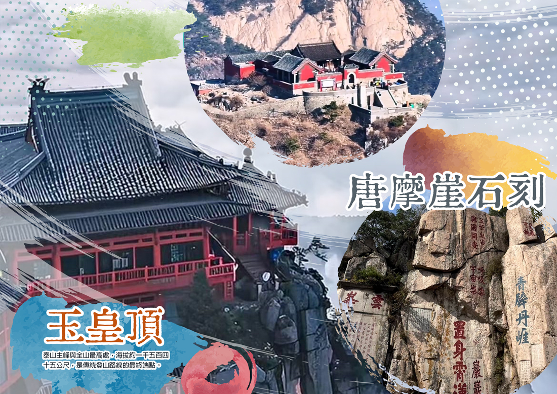 世界文化與自然雙遺產【泰山風景區】以泰山主峰一帶為核心,自古被視為東嶽,在歷代帝王封禪與祭祀活動中占有重要位置。山體海拔一千五百公尺上下,自山腳到山頂分布牌坊、石階、古道與寺廟建築,沿途可見大量題刻與摩崖石刻,記錄不同行政時期與文人活動。自漢唐以降,登泰山逐漸成為結合政治儀典、宗教信仰與文人遊歷的山岳路線。現行旅遊多由山腳進入,經紅門或中天門一帶上山,再透過景區接駁車與纜車銜接至南天門與玉皇頂區域,將傳統步行路線與現代交通組合成完整的登山動線,讓旅客在有限時間內仍能看到主要景觀與歷史建築。
