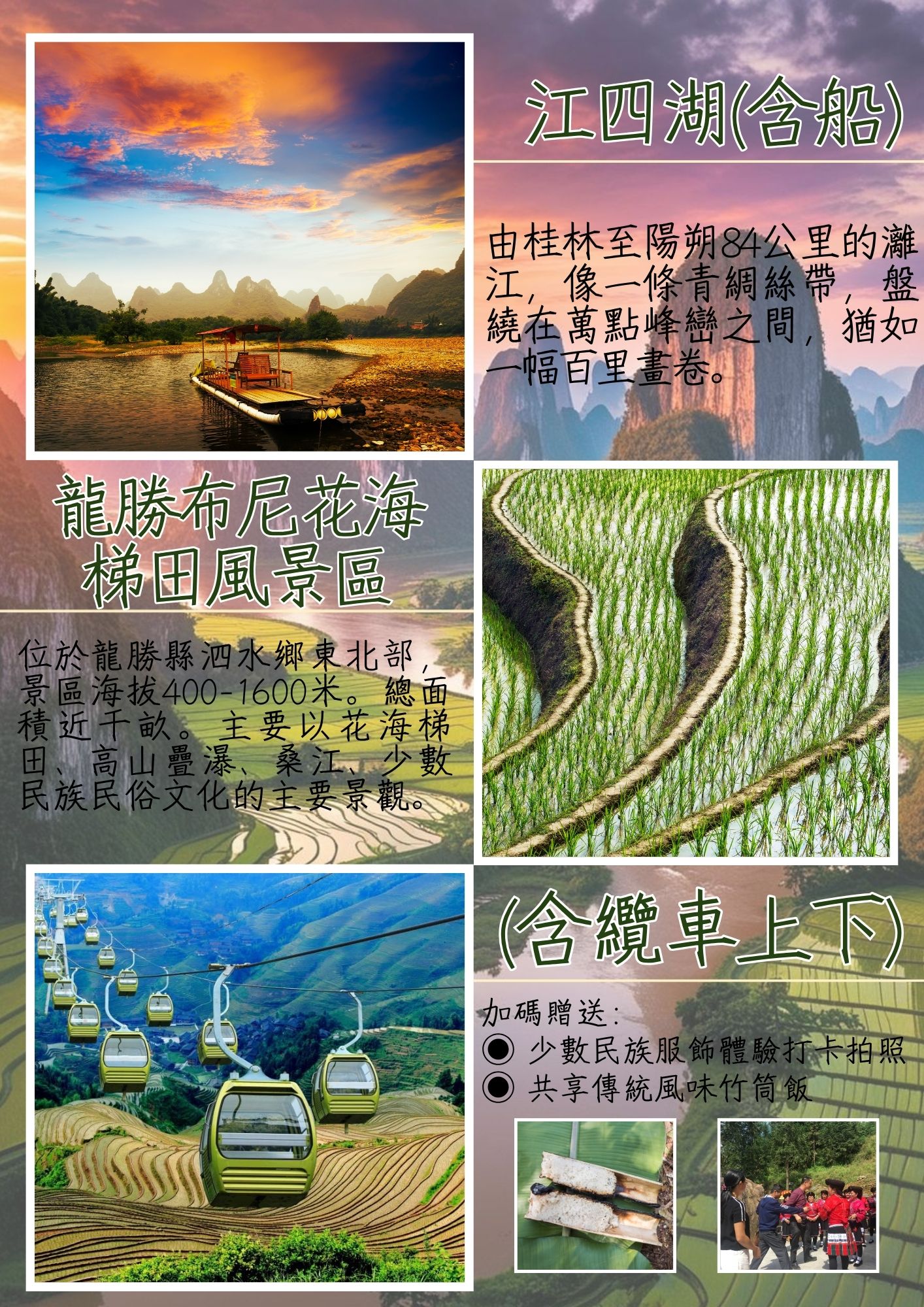 4.行程表內明列車資、餐食、住宿、旅遊景點、每人已含旅遊契約責任險及醫療險。