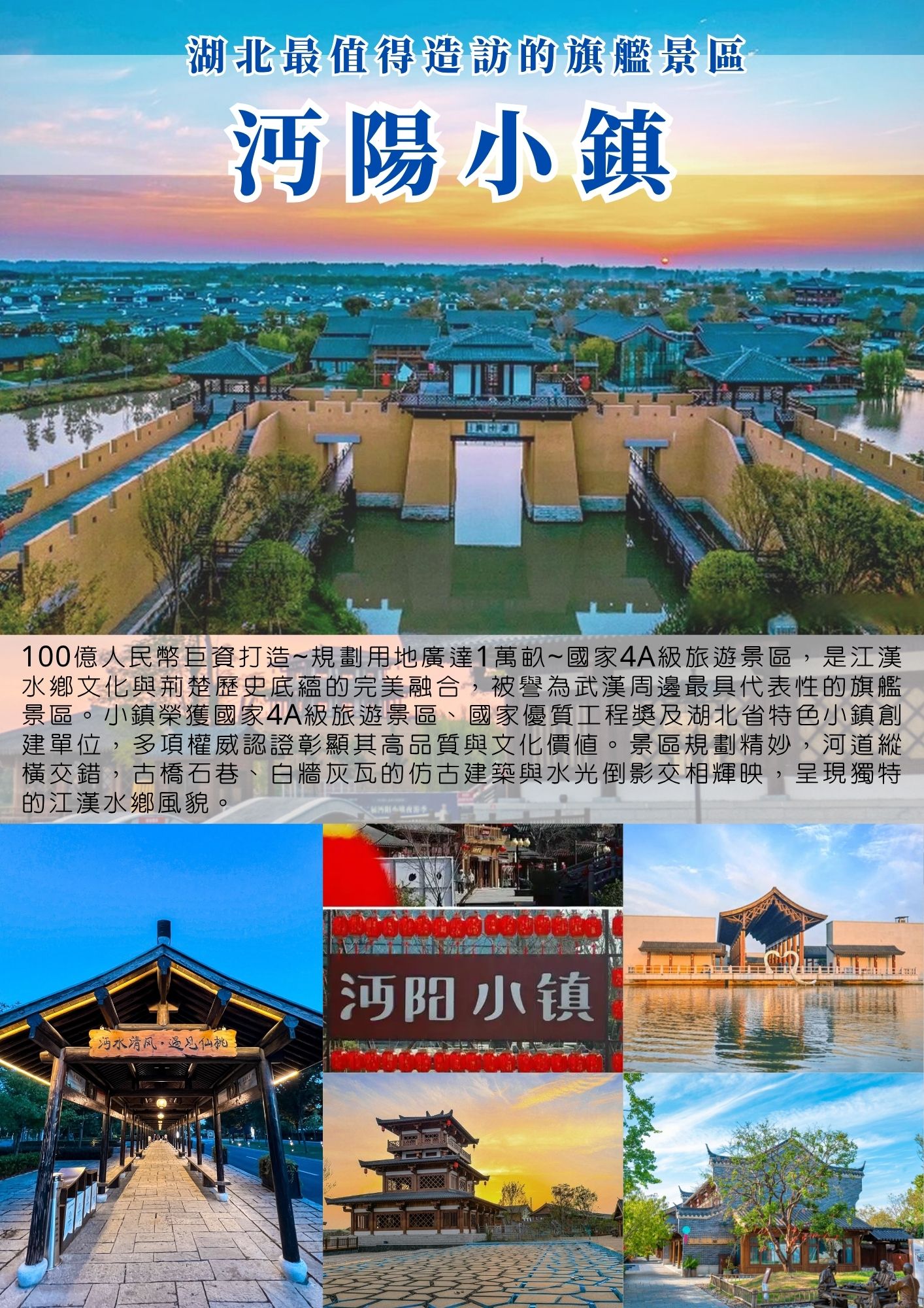 100億人民幣巨資打造~規劃用地廣達10000畝~國家4A級旅遊景區~湖北最值得造訪的旗艦景區【沔陽小鎮(飛車特技表演、傳統舞蹈秀、….等多項演出)】位於湖北仙桃排湖旅遊度假區,是江漢水鄉文化與荊楚歷史底蘊的完美融合,被譽為武漢周邊最具代表性的旗艦景區。小鎮榮獲國家4A級旅遊景區、國家優質工程獎及湖北省特色小鎮創建單位,多項權威認證彰顯其高品質與文化價值。景區規劃精妙,河道縱橫交錯,古橋石巷、白牆灰瓦的仿古建築與水光倒影交相輝映,呈現獨特的江漢水鄉風貌。白天,遊客可漫步古街,品嚐地道沔陽三蒸與地方米酒,並參與皮影戲、竹編與三蒸手作等非遺互動體驗,深入感受地方文化;夜晚,水上燈光秀與情景劇《三蒸傳說》將古鎮點亮,河面倒影與燈光交織,打造如夢如幻的夜間景觀。此外,小鎮兼顧親子與團體互動,設有尋寶遊戲、團隊解謎及畫舫巡遊等體驗項目,增添遊玩樂趣。作為省級夜間消費聚集區,古橋、荷花池與燈影水秀成為拍照打卡熱點。距離武漢僅約一小時車程,交通便利,使沔陽小鎮成為短途休閒、文化探索與親子度假的理想目的地。無論白天漫遊水鄉古街,或夜晚欣賞燈光水秀,沔陽小鎮都以其濃厚的文化底蘊與多元旅遊體驗。