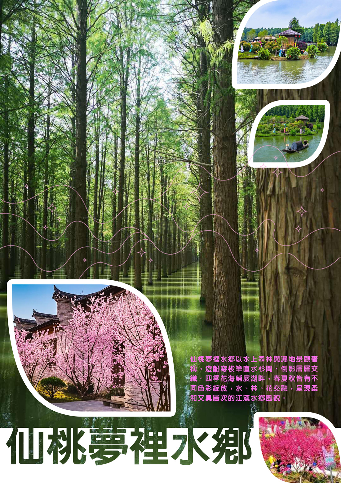 • 【夢裡水鄉】水鄉花海美景與遊船河道,感受江南水鄉浪漫氣息。