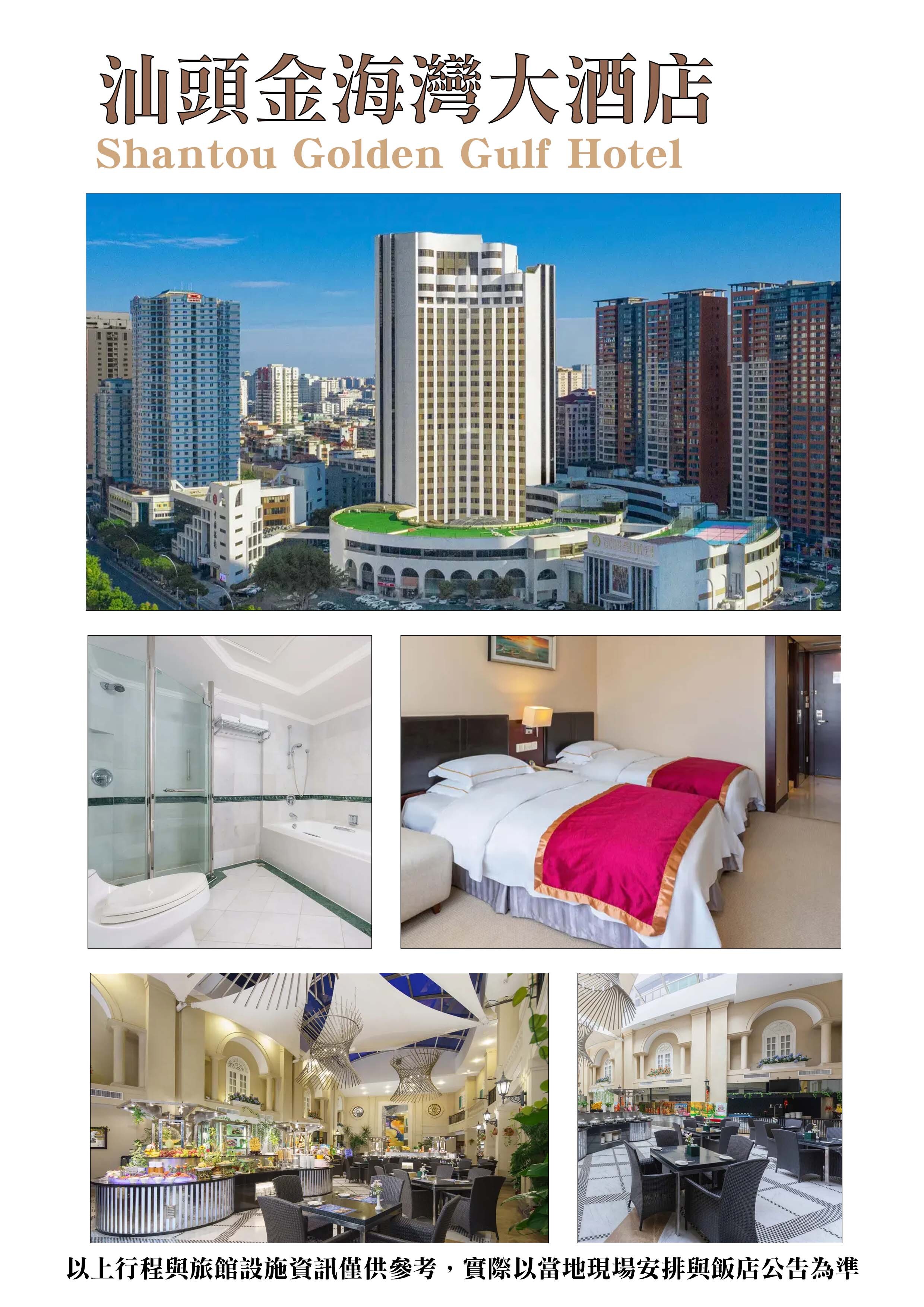 住宿:汕頭國際大酒店或汕頭金海灣大酒店或同級