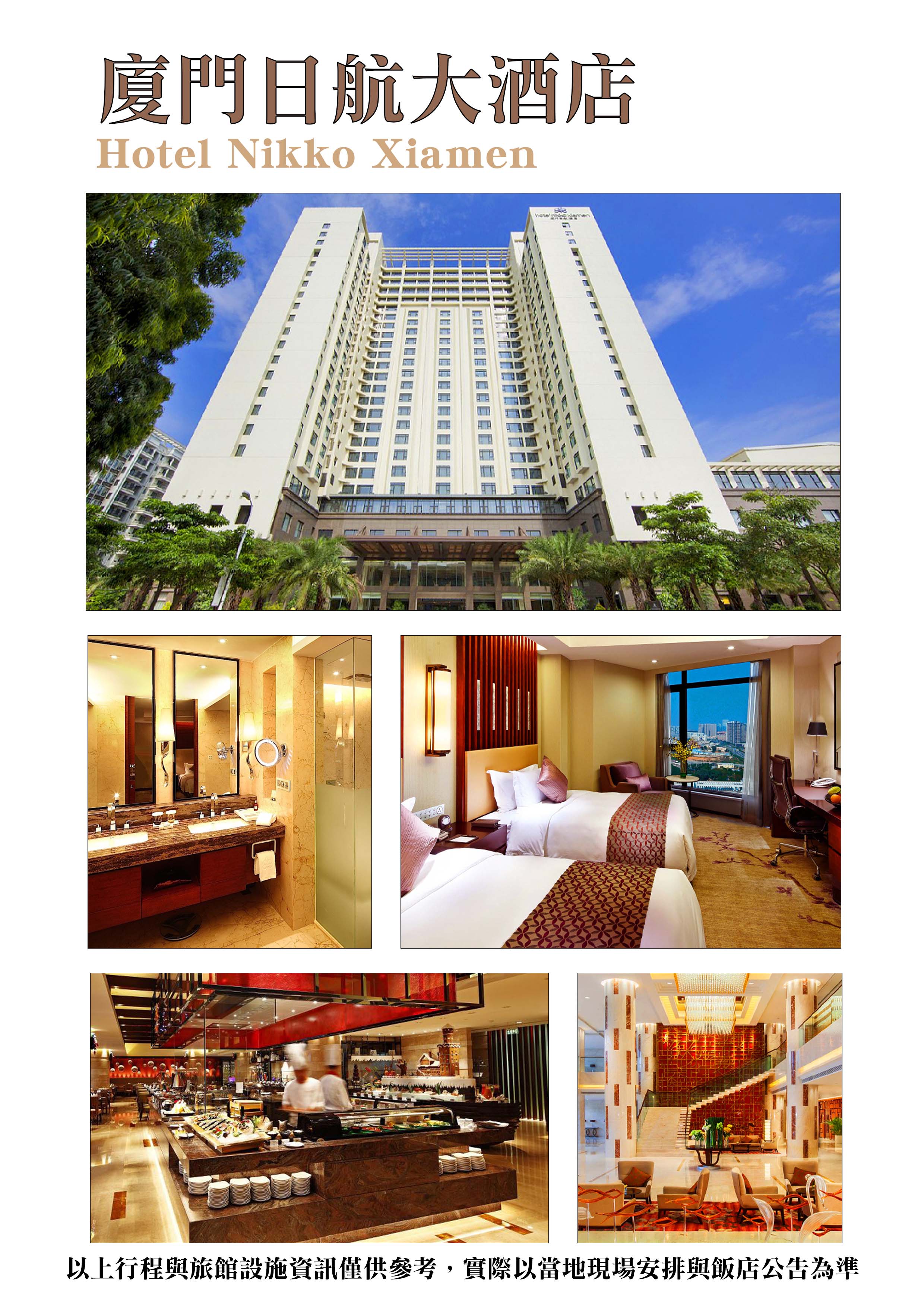 住宿:廈門日航大酒店或廈門海旅溫德姆大酒店或廈門泰地萬豪大酒店或同級
