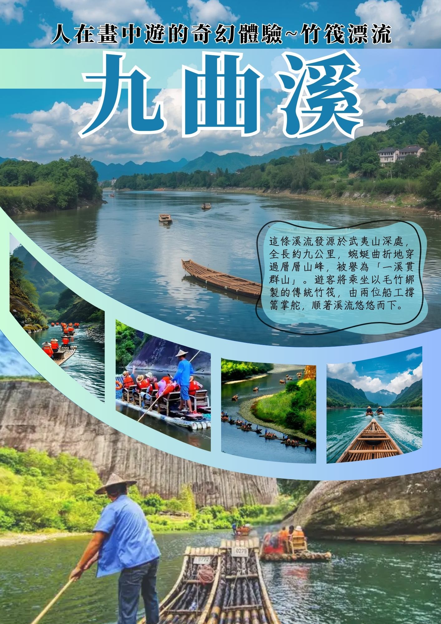 九彎十八折~每一彎都藏著不同美景【九曲溪】位於武夷山核心景區,是一條蜿蜒曲折、景色如畫的清澈溪流。溪水繞山而行,九曲十八彎,河道兩岸群山疊翠、古樹參天,形成宛如水墨畫般的自然景觀。遊客可以乘坐傳統竹筏漂流,隨著竹筏緩緩漂行,欣賞兩岸奇峰怪石、飛瀑流泉,體驗武夷山“山水相映”的獨特魅力。沿途不僅可以看到典型的丹霞地貌,還能感受到濃厚的茶文化氛圍,因為武夷山是大紅袍等名茶的產地,竹筏漂流過程中偶爾能聞到淡淡茶香。九曲溪的水質清澈見底,四季景色各異:春夏時節翠綠如畫,秋天溪邊紅葉點綴,冬季則多了份靜謐與詩意。