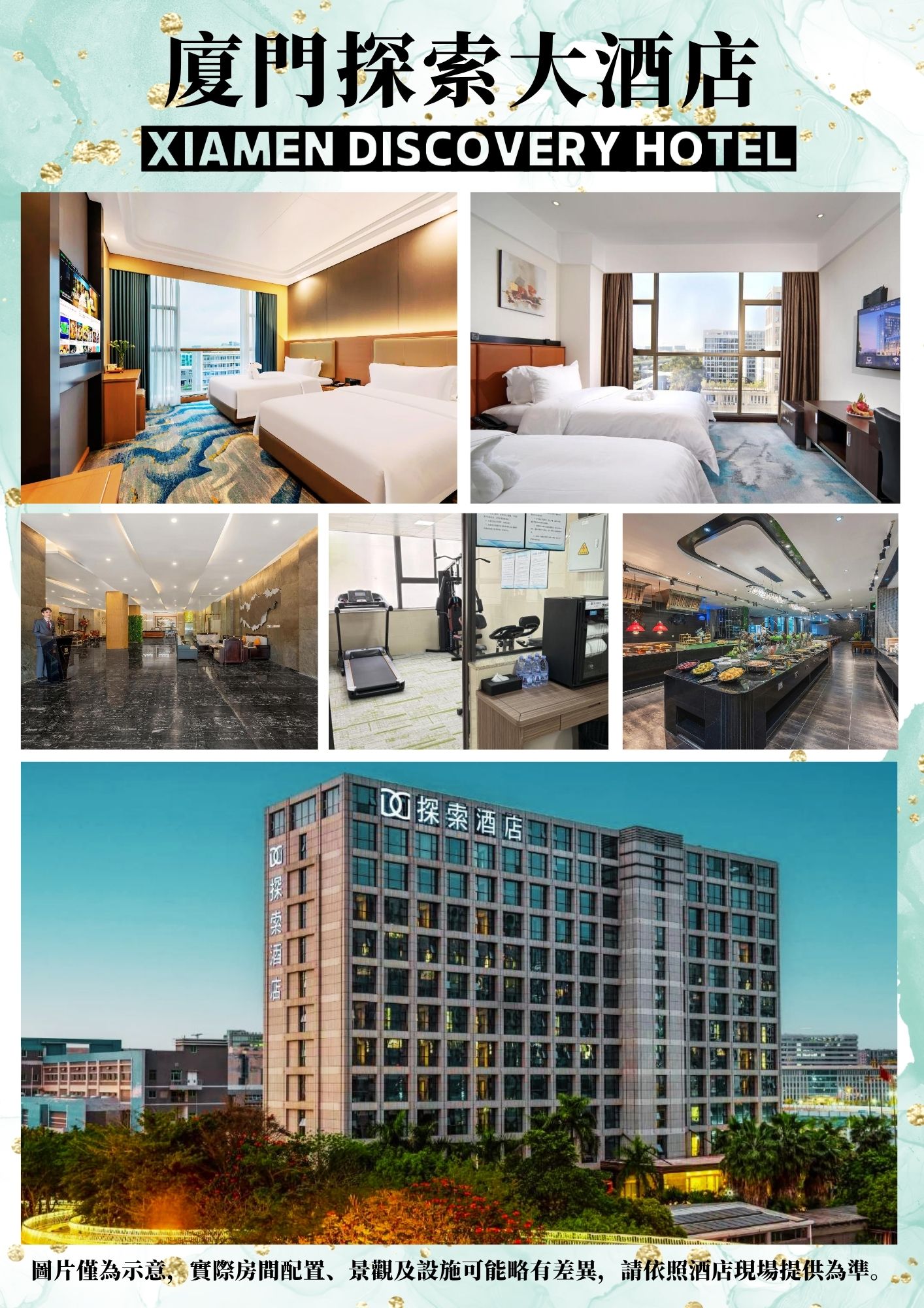 住宿:廈門探索大酒店或廈門希爾頓花園酒店或廈門瑞頤逸居酒店或同級
