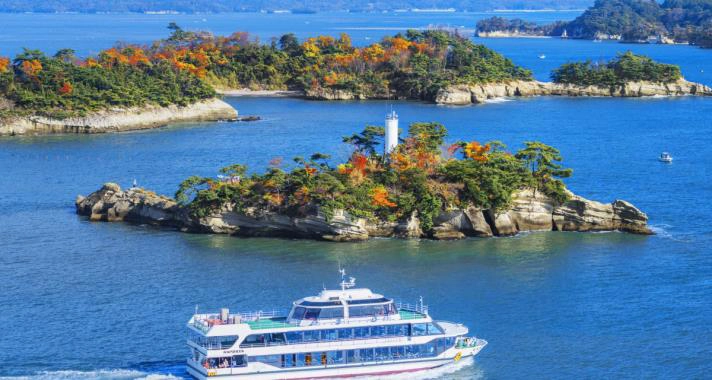松島是散佈在松島灣一帶260多個大小島嶼所構成島嶼群的總稱。松島也與宮津市的『天橋立』、廣島縣的『宮島』,並稱為「日本三景」。 遊覽松島最好的方式就是搭乘遊覽船,在藍天白雲之下能飽覽諸多小島的秀美風光。