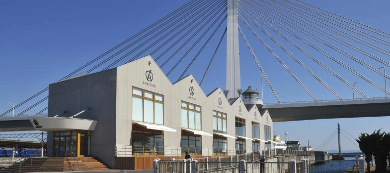 最多青森蘋果伴手禮商場,A-Factory外觀就像是個有設計感的大倉庫,走的是簡約時尚路線。名字中的「A」代表「Aomori」(青森的英文名)以及「Apple」(蘋果,青森最知名的物產),所以也有人稱這裡為「蘋果工廠」。