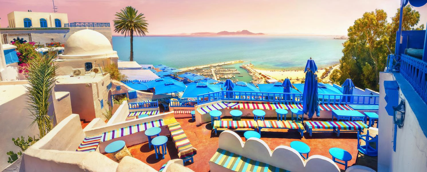 被譽為「地中海最美村落」。這裡全村遵循統一的建築風格:潔白的牆面襯托著鮮豔的藍色窗櫺與拱門,與襯底的海水形成絕美對比。在這裡喝杯薄荷松子茶,俯瞰突尼斯灣,便能深刻感受北非獨特的北非慵懶與優雅浪漫。