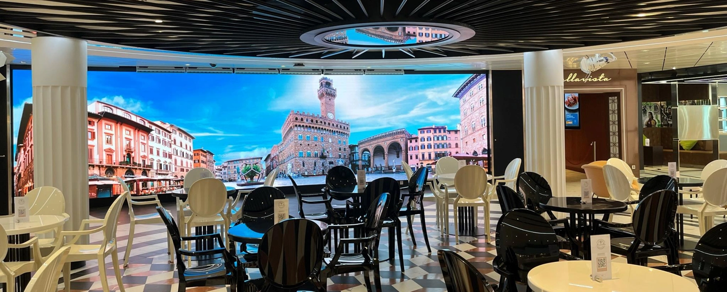 擺出屬於您的POSE,讓船上專業攝影師為您留下美麗記憶,當您進入挑高的華麗大廳時,專業的服務人員正喜悅地歡迎每位貴賓登船。當全船所有人都參加救生演習後,豪華遊輪鳴笛緩緩離開碼頭,隨即展開地中海之旅。