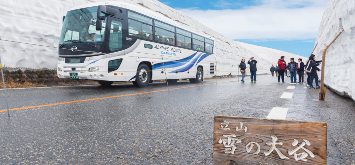 立山素有『日本阿爾卑斯山』之稱,是日本三大靈山之一。每年四月下旬至十一月中下旬才可全線行車。四月開始通車之前,雪車在積雪中挖出一條雪道,穿越兩旁約二十公尺高十分壯觀的雪壁,震懾之餘,也感受到另一種自然之美。