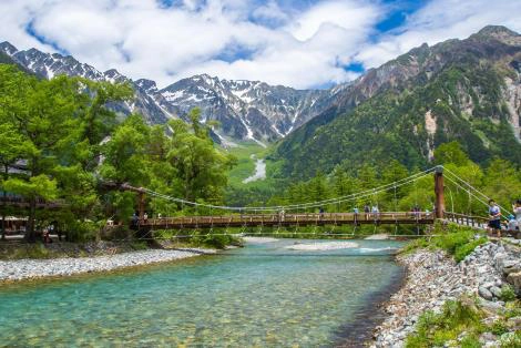可謂是上高地的象徵,可觀賞到自唐朝傳進的落葉松與此地的山水景色交織成一遍如詩如畫的景緻,不容錯過。河童橋是一個特別受歡迎的攝影點,站在橋上,面朝上游方向,可以飽覽高岳頂峰與明神岳,風景極佳。