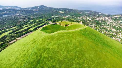 海拔580公尺的大室山是伊豆單成火山群中最大的火山之一,更是被指定為「國家天然紀念物」,被選為「伊東八景」之一。在春季至夏季,沿山勢生長的草叢樹林翠綠鮮豔,更有著「抹茶山」的外號!搭乘䌫車用時約4分鐘,雙腳仿佛能觸碰到隨風搖曳的草叢一般。登上直徑約300公尺的山頂,可以360度俯看伊豆街景和城崎海岸。