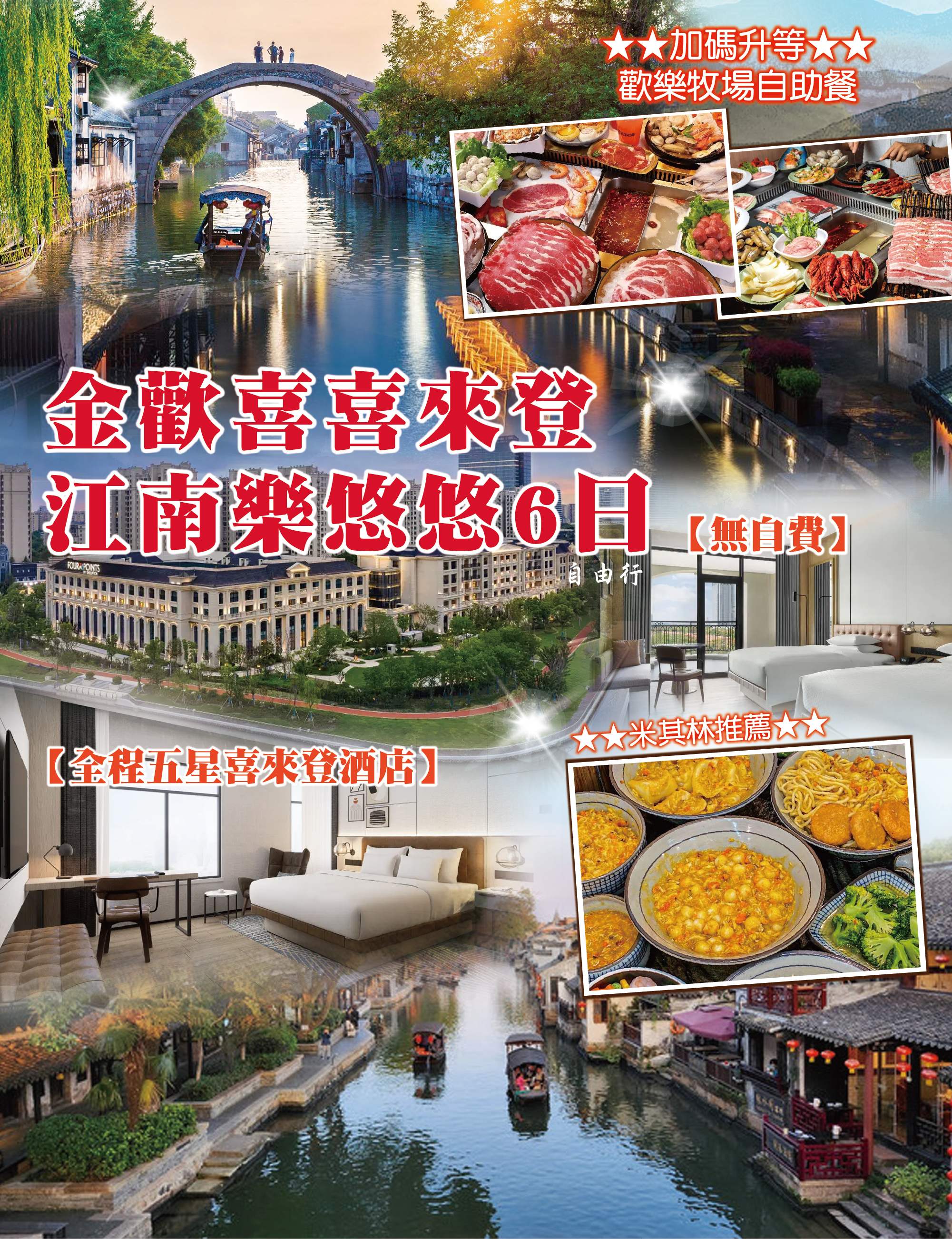 全寬敞典雅的客房搭配高端設施,尊享極致舒適與便利。隸屬於全球最大酒店集團【萬豪國際集團 (Marriott International)】該品牌主打「經典舒適」與「誠實服務」,結合現代設計與便利設施,是專為商務及休閒旅客打造的國際品牌酒店;酒店配備泳池、健身與休閒設施,並提供專業貼心服務,讓賓客體驗尊貴品味。無論家庭出行或親友同遊,喜來登酒店都將為您的江南之旅增添奢華與完美回憶。