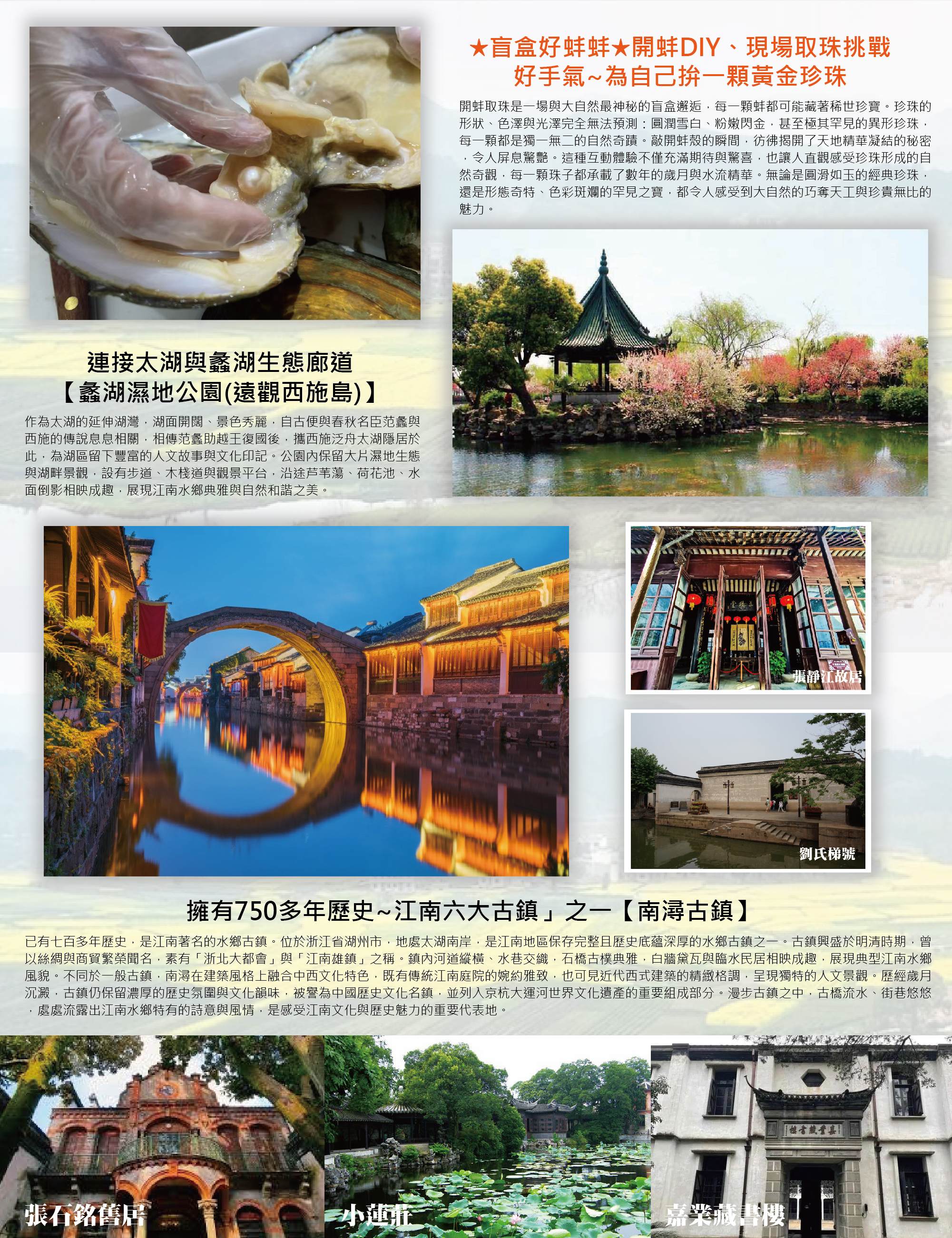 備註:景區內提供無錫珍珠及相關商品,由景區自行經營,旅客可依自身興趣及需求,自行決定是否參觀或選購。