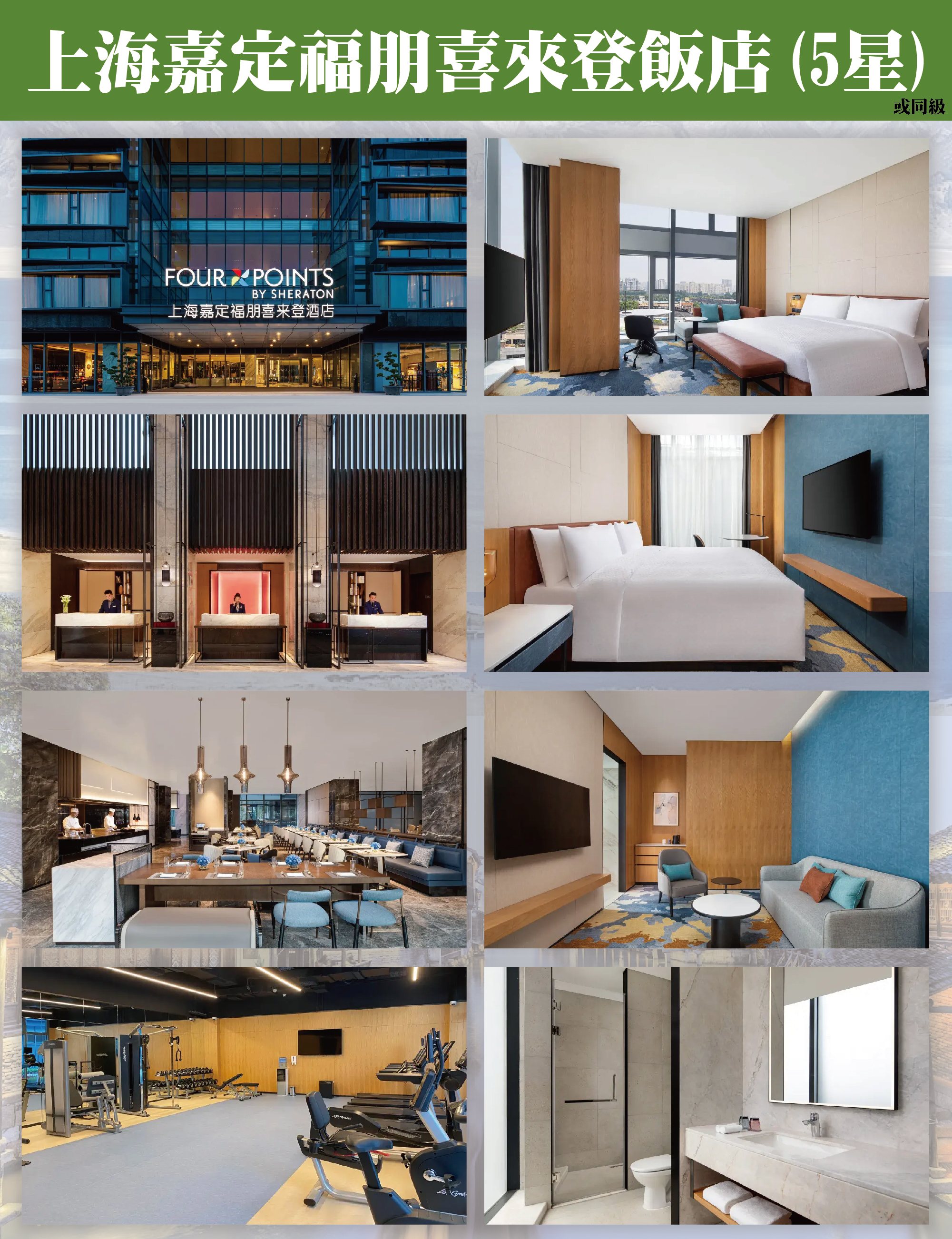 住宿:💎💎💎💎💎上海嘉定福朋喜來登酒店或同級(如遇假日滿房,飯店將有前後順序調整之最終權利)