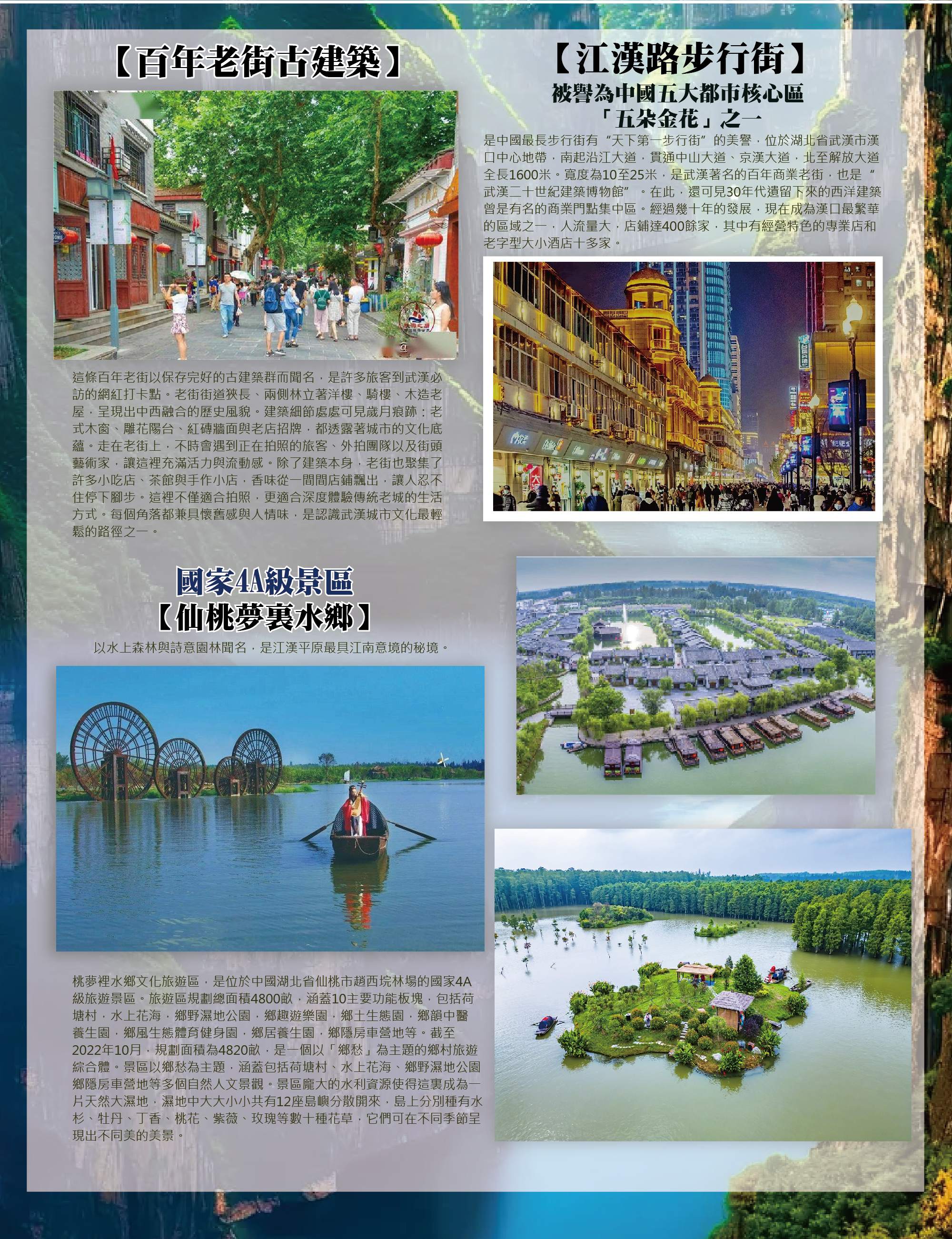 帶著滿滿回憶前往『武漢機場』,辦理登機與離境手續,搭乘航班飛往『香港機場』。抵達後轉乘國際航班返回『桃園機場』,結束此次愉快旅程。期待再次與您同行。