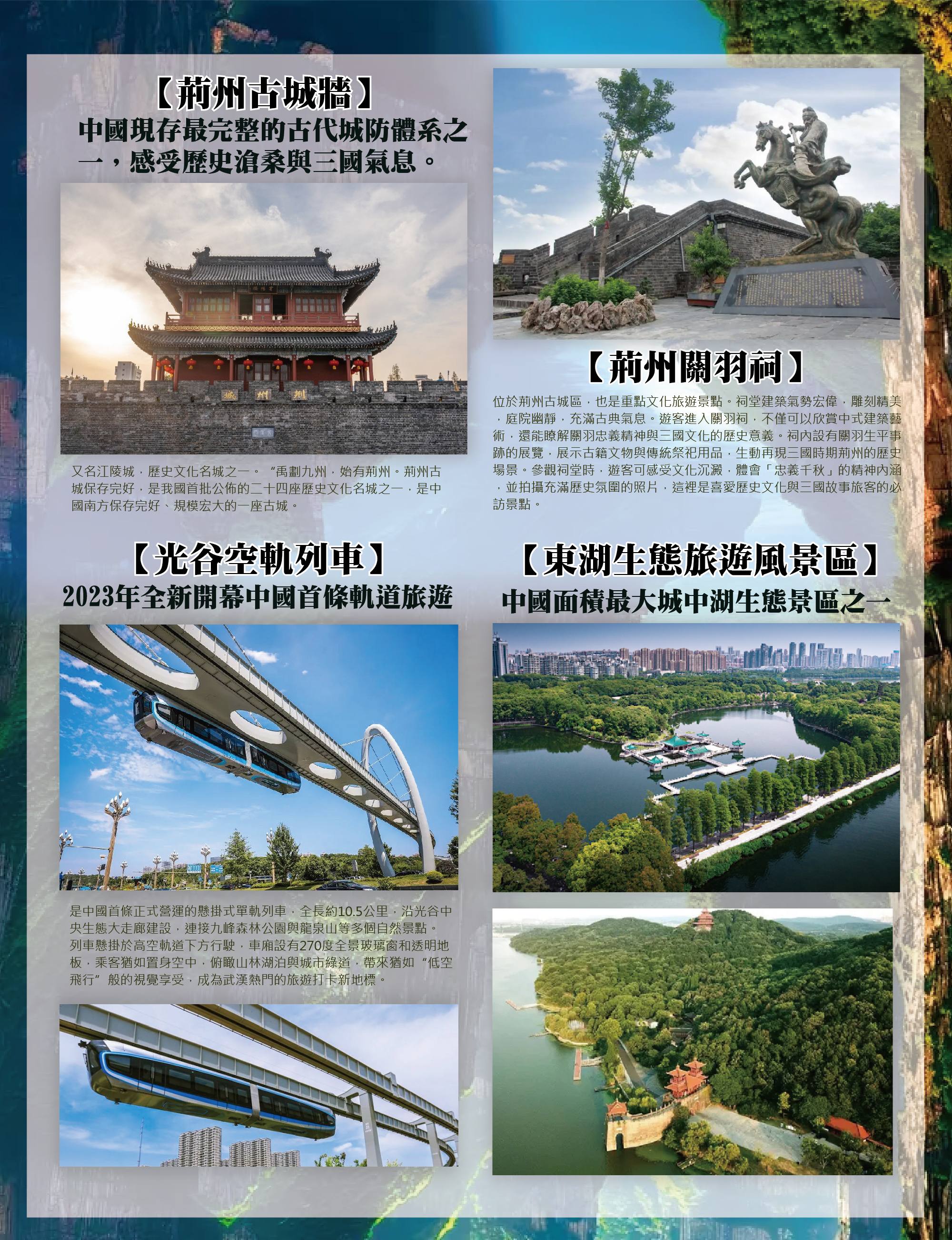 【荊州】作為楚文化的重要發源地之一,歷史悠久,素有「楚文化名城」之稱。城市沿江而建,地勢平坦,古今交融,既保留了豐富的歷史遺跡,也擁有現代都市的便利與活力。抵達荊州後,遊客即可感受到這座城市深厚的文化底蘊與歷史氣息,體驗荊州作為古戰場與商貿重鎮的魅力。