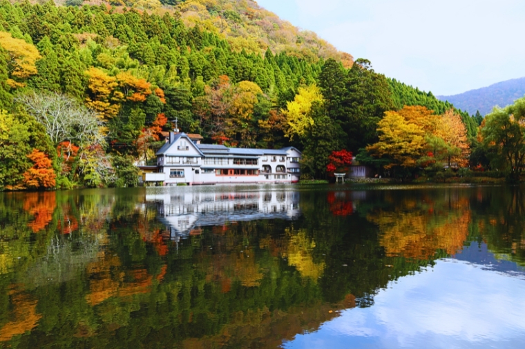 由溫泉匯流而成的金鱗湖,即使是嚴冬季節,湖水也熱氣騰騰,是盆地中晨霧的來源。這一帶充滿情趣的風景,深深地迷戀了與謝野晶子和北原白秋等著名人士,是湯布院最著名的湖泊。