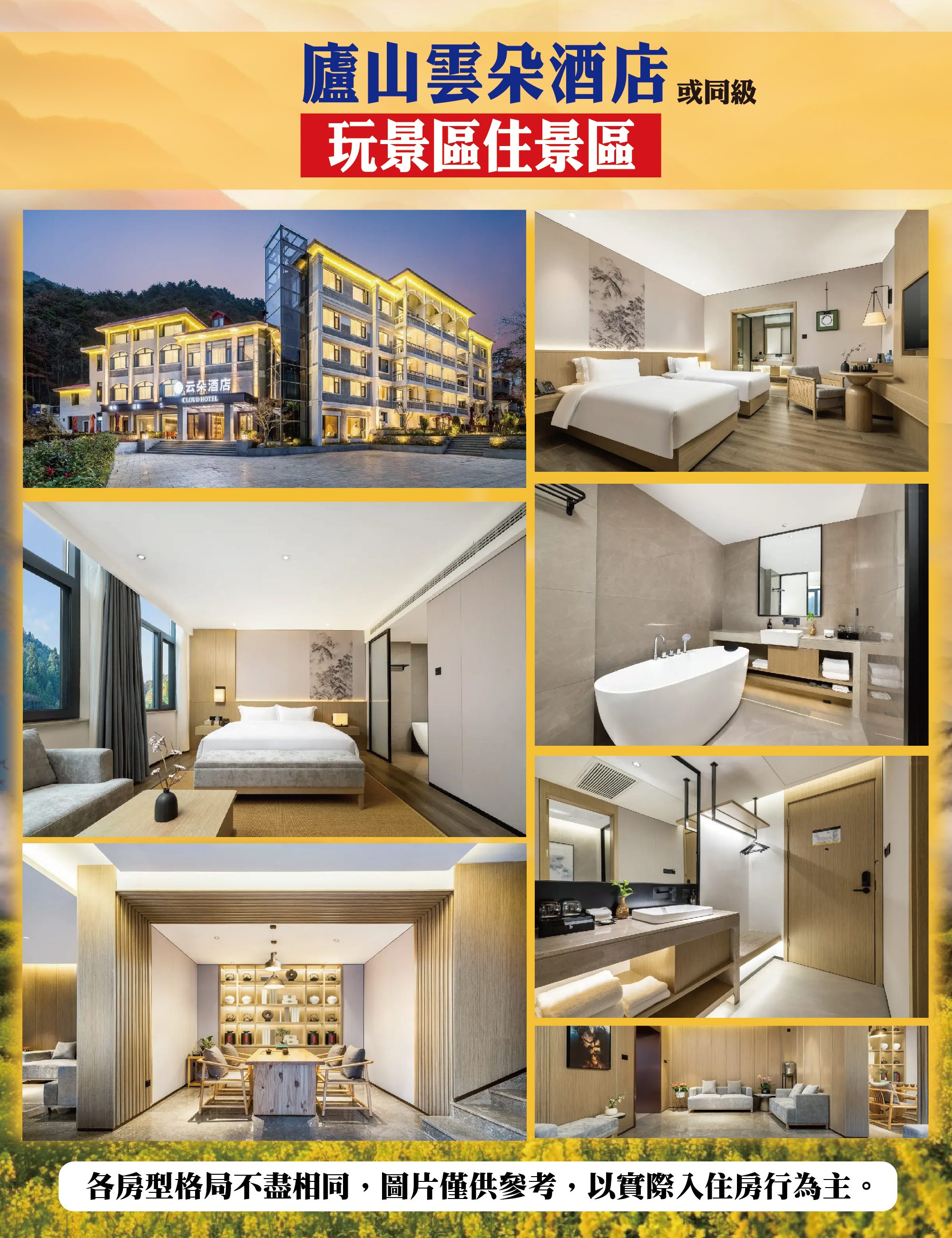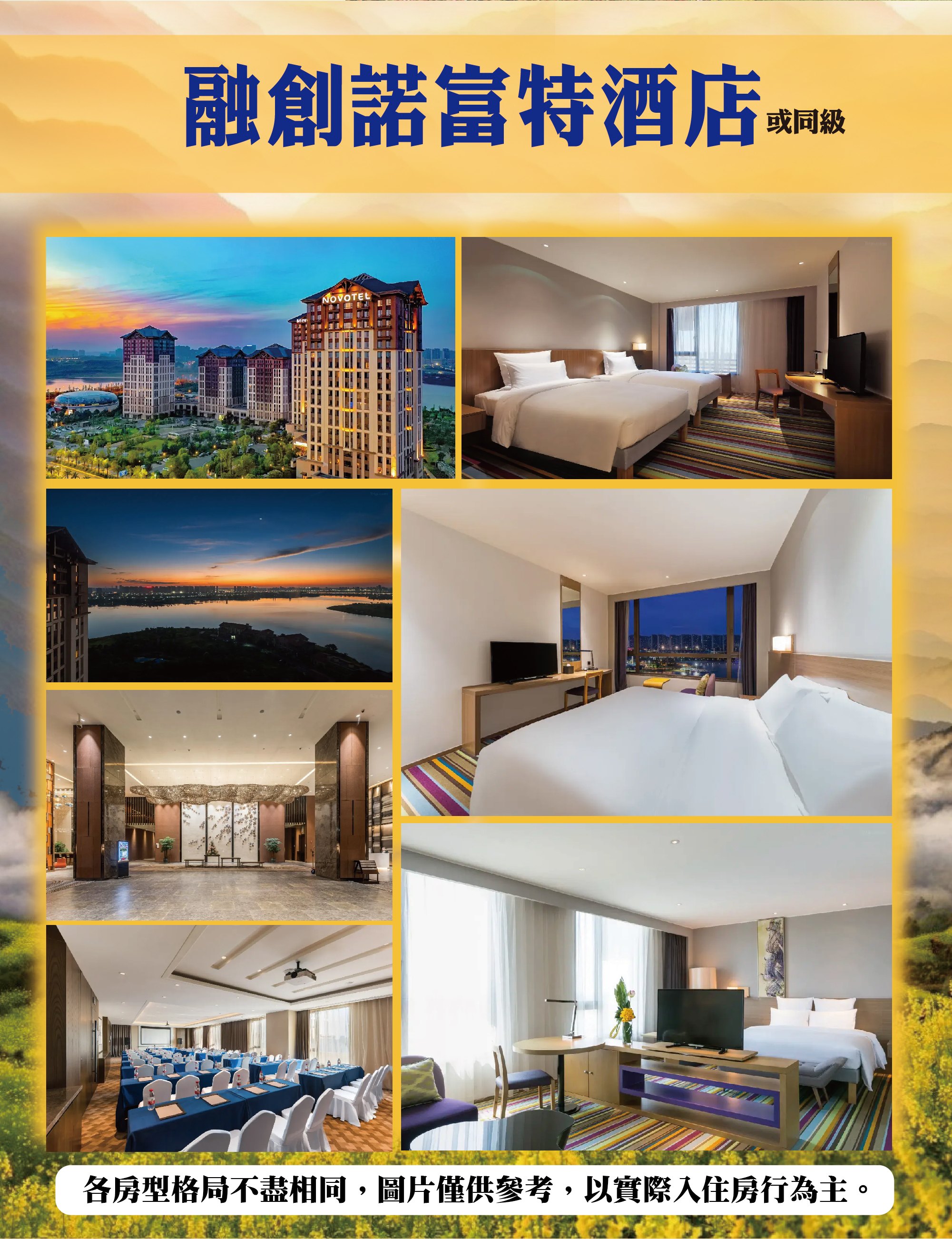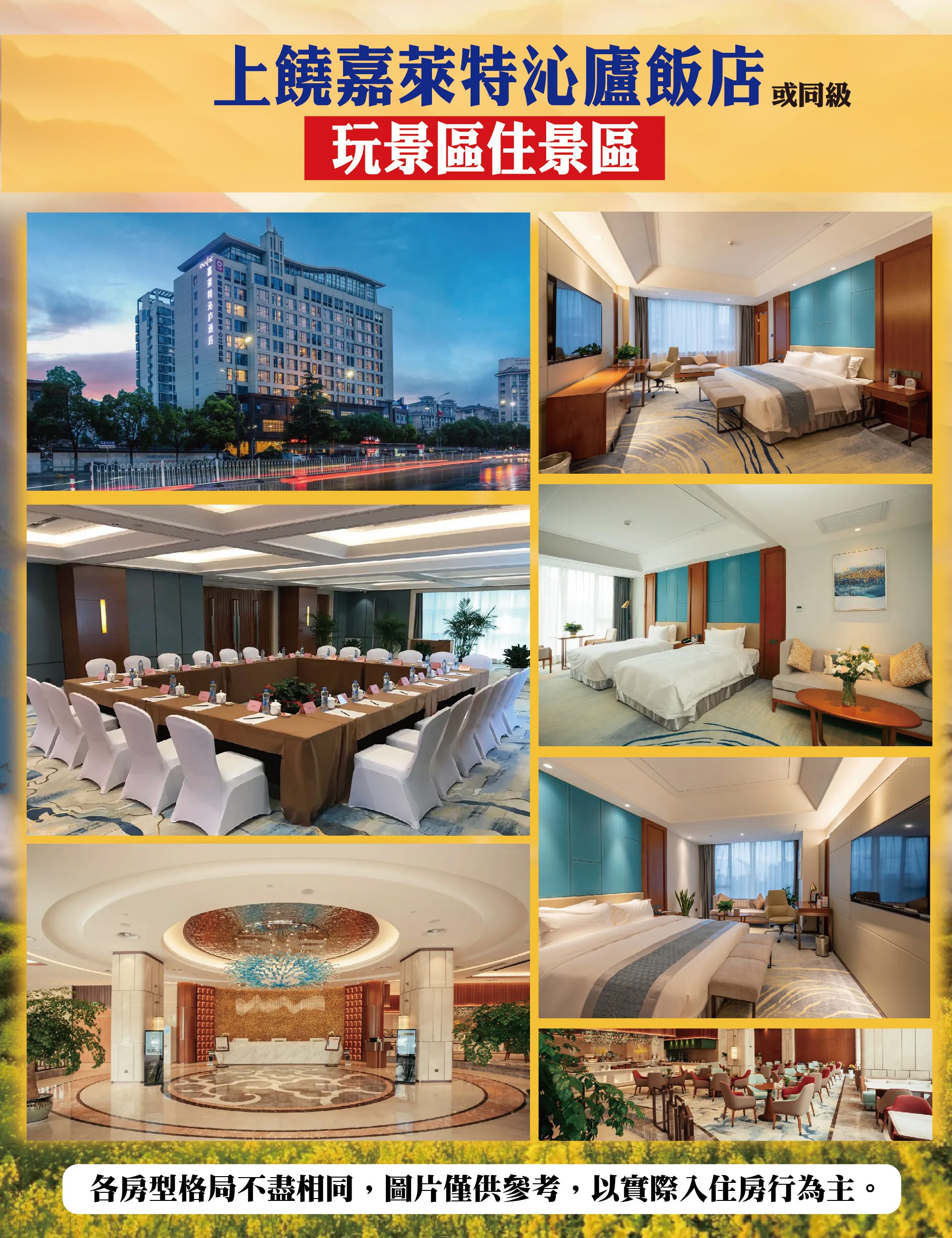 ◉ 住宿以行程所載酒店為優先,若遇滿房或特殊情況(如會議、政府徵收),將以同級酒店替代。