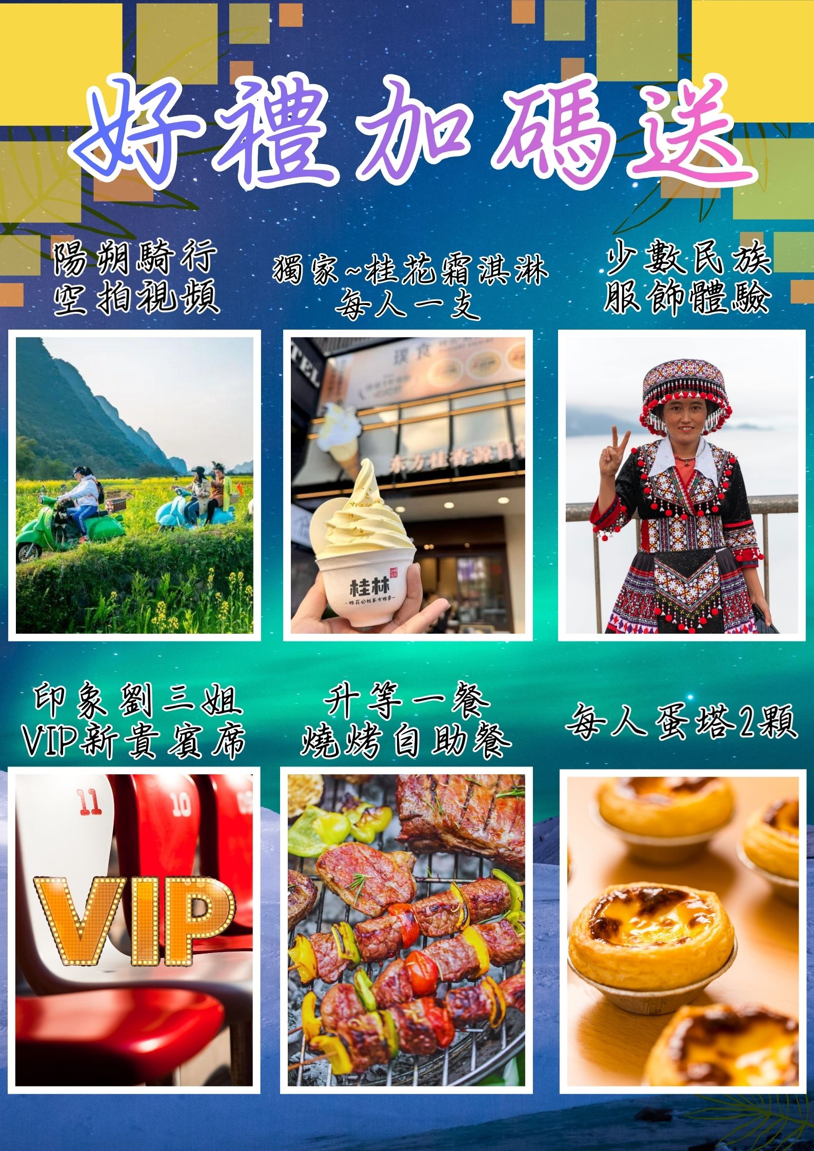 ★《印象劉三姐》實境表演:尊享新貴賓席,零距離感受山水間的壯麗歌舞。