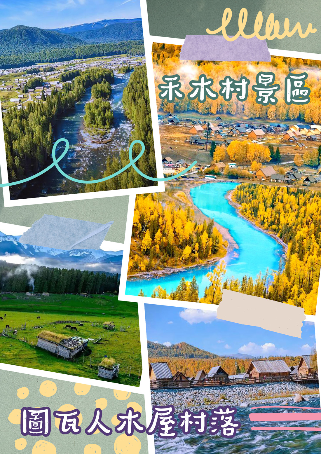 有中國第一村、攝影天堂之稱,四季風景皆美【禾木村景區(含區間車)位於新疆阿勒泰地區布爾津縣的禾木村景區,是北疆著名的原始村落與自然風光保護區,四周群山環抱,河流蜿蜒,林地茂密,主要由白樺林和落葉松林組成,呈現典型的北方針葉林與河谷景觀。景區四季景色各具特色:春夏時節,河水清澈、林地翠綠,草地繁花點綴,展現北疆河谷的生機與清新;秋季,林木染上金黃與火紅,層林盡染,景色壯麗;冬季,山川覆雪,河谷與林地呈現寧靜純淨的冰雪景象,整體自然景觀保存完好,充滿原生態氣息。景區設有區間車,方便旅行團沿主要路段觀賞沿途壯麗景色,從河谷、林地到草原與高山,完整呈現北疆原始自然風貌。依山傍水、林地與河谷交錯的地貌特色,使整個景區既雄偉壯麗,又寧靜原始。作為北疆重要的旅遊景點之一,完善的交通與觀賞路線安排,使旅客可輕鬆感受自然山河的清新氣息,享受原生態景觀帶來的寧靜與舒適,留下深刻而難忘的旅行體驗。