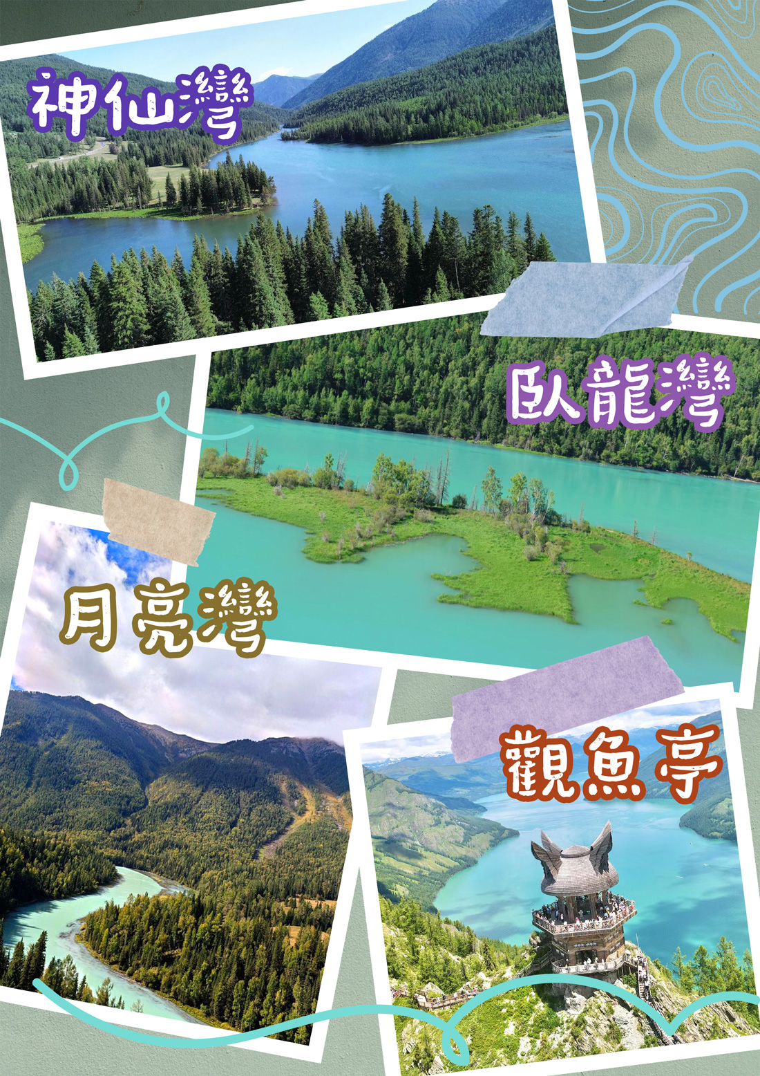 第四天【布爾津】《中國國家地理雜誌》評選為「中國最美的六大鄉村古鎮」【喀納斯風景區(含區間車)】→一眼就讓人停下腳步的額爾齊斯河畔彩岩畫布【五彩灘】 景點:喀納斯風景區(含區間車),觀魚亭(含區間車),喀納斯湖畔棧道漫步(欣賞西伯利亞泰加林)、神仙灣、月亮灣、臥龍灣 →車程時間:賈登峪→(130KM約2.5H)布爾津