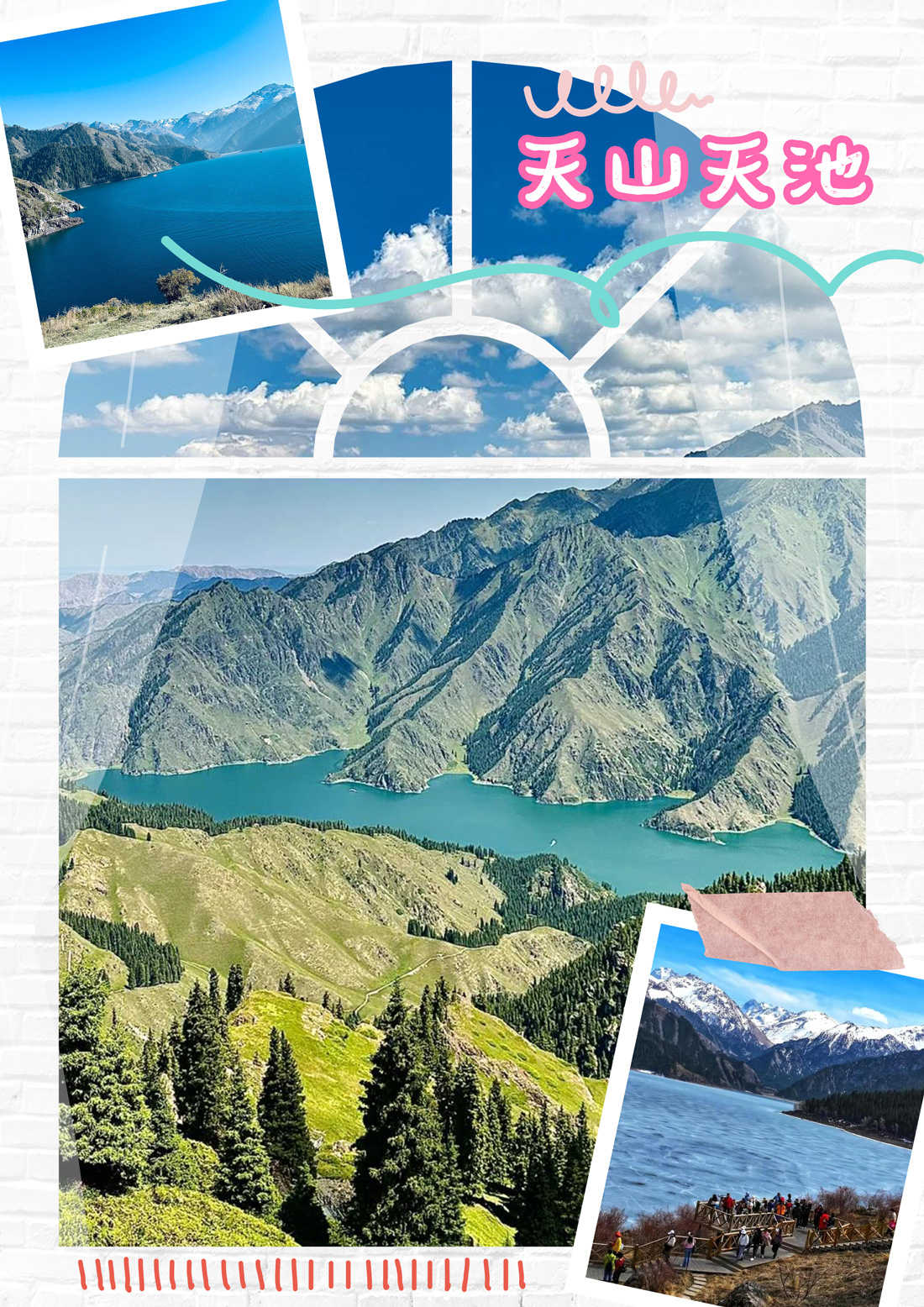 群山之間,靜水一泓,映著雪峰的高山湖泊【天山天池】(含區間車)天山天池位於新疆阜康市境內,座落於天山山脈中段,湖面海拔約 1,980 公尺,屬高山冰蝕湖地形。湖水主要來自高山融雪與降水補給,水質清澈,色澤隨季節與光線變化呈現深淺層次。湖區四周環繞天山雲杉林,遠方可見柏格達峰,形成高山、森林與湖泊交織的景觀畫面。此地氣候屬高山氣候型,夏季氣溫涼爽,日夜溫差明顯,為北疆避暑型景點之一;冬季氣溫偏低,湖面常結冰,山區覆雪時間長。春秋季節氣候穩定,能見度佳,湖水與山景層次分明,適合進行湖畔步行與景區遊覽。天山天池自古即為天山重要的自然景觀節點,結合地形高度、氣候條件與植被分佈,展現北疆高山湖泊的典型樣貌。景區動線完整,能在短時間內欣賞湖景、森林與雪峰景致,為北疆行程中具代表性的自然景點。