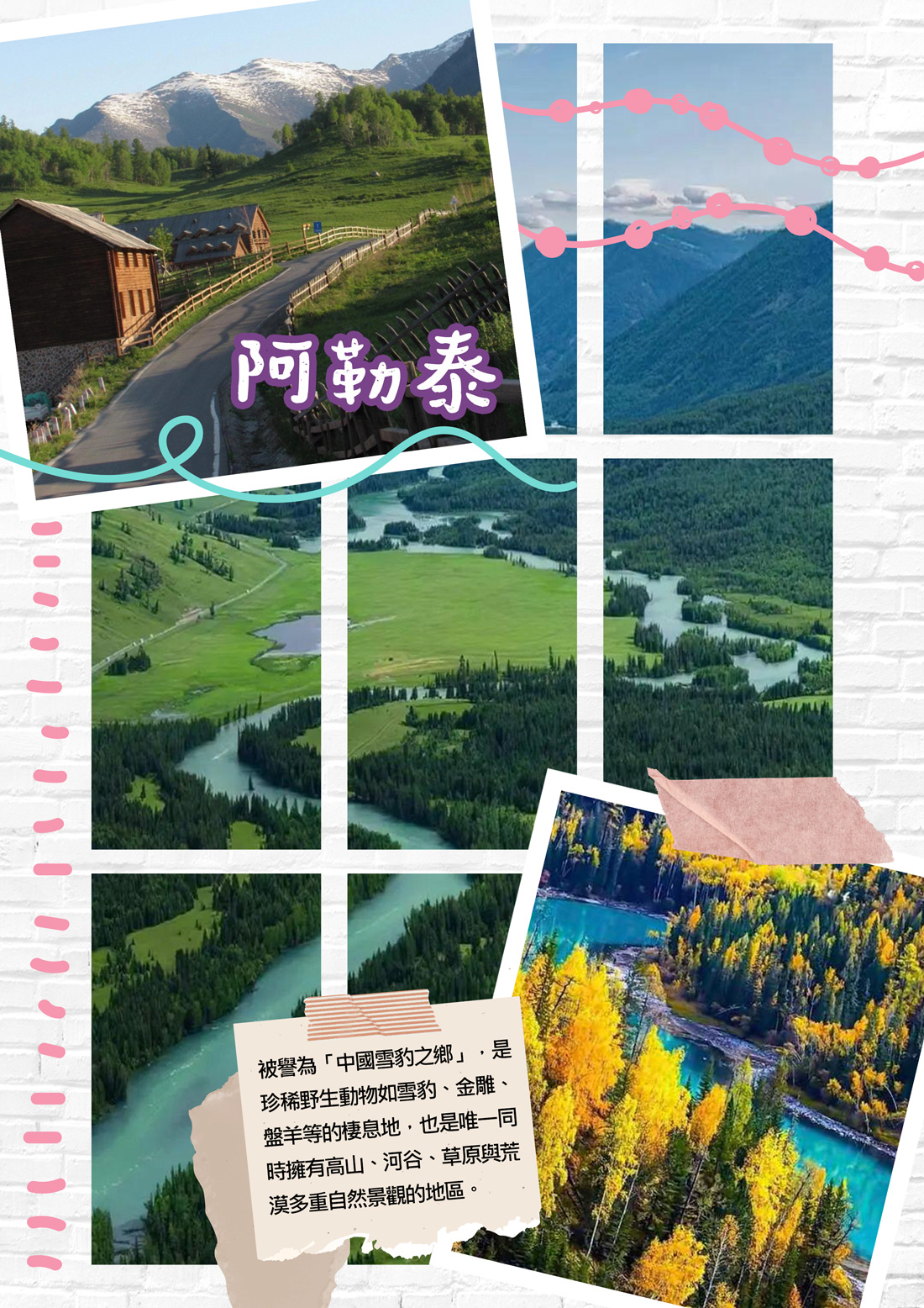 【阿勒泰】阿勒泰地區位於中國新疆北部,是新疆最北端的重要地區,也是中國唯一同時擁有高山、河谷、草原與荒漠多重自然景觀的地區之一。這裡擁有壯麗的阿爾泰山脈,山峰巍峨、冰川縱橫,形成豐富的水資源與河谷風光。阿勒泰被譽為「中國雪豹之鄉」,是珍稀野生動物如雪豹、金雕、盤羊等的棲息地,同時也是蒙古野驢和野駱駝等珍稀物種的重要保護區域。
